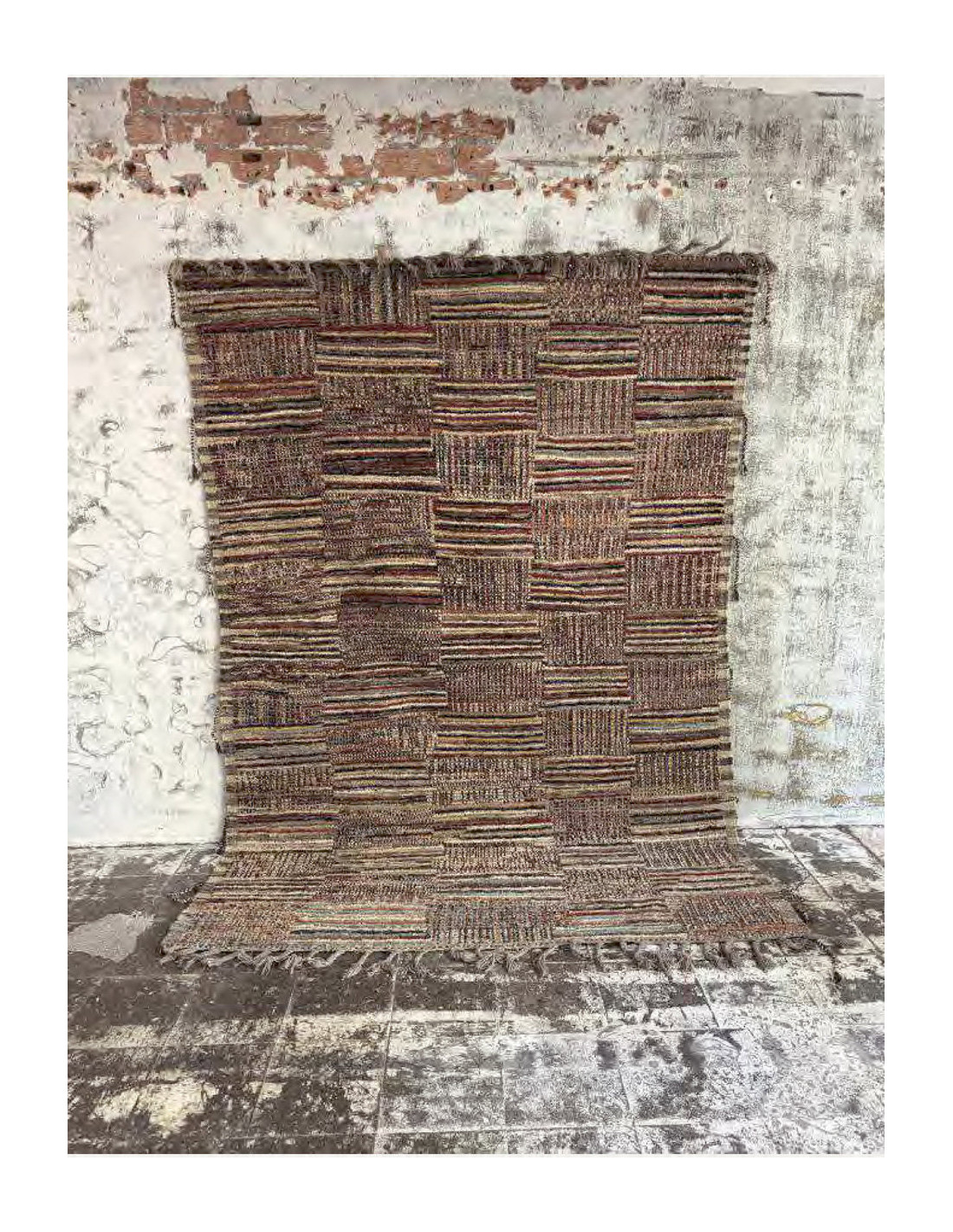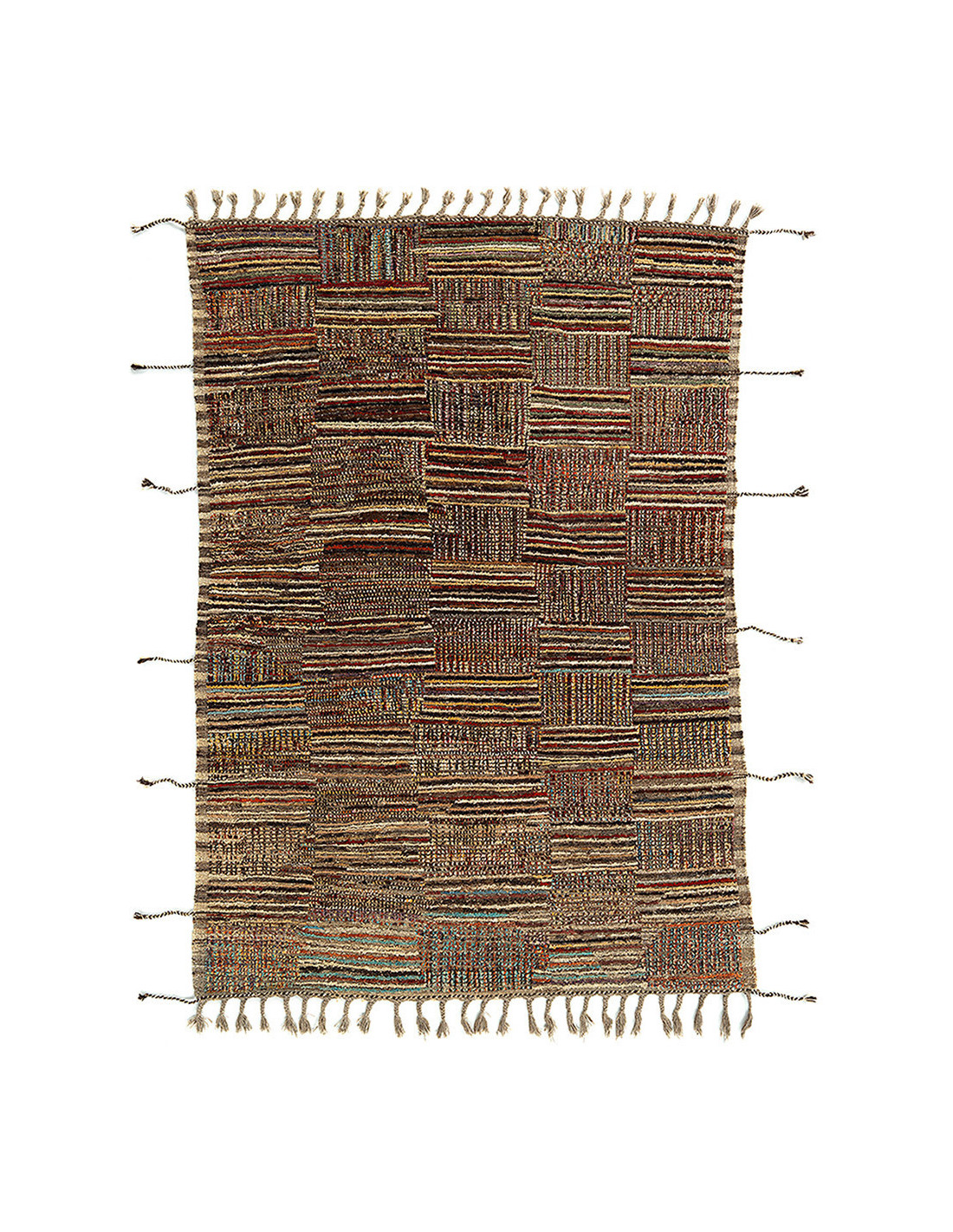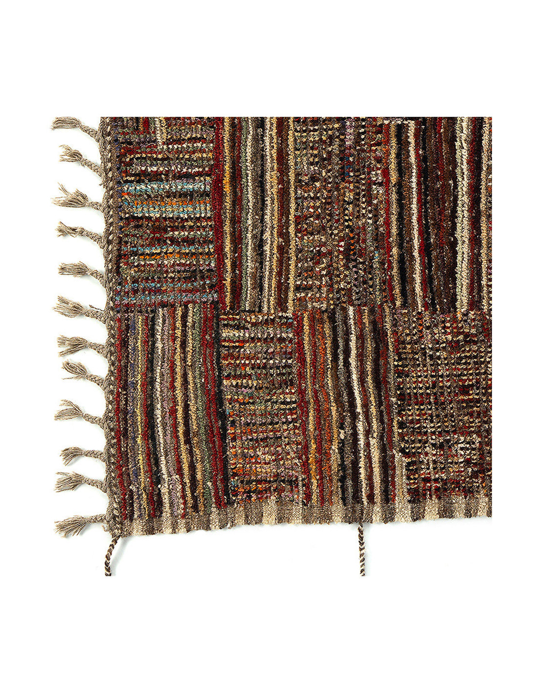 Grand Tapis Afghan ethnique chic Rectangulaire 209x290 Laine Multicolore Avec franges Motif patchwork The Handwoven