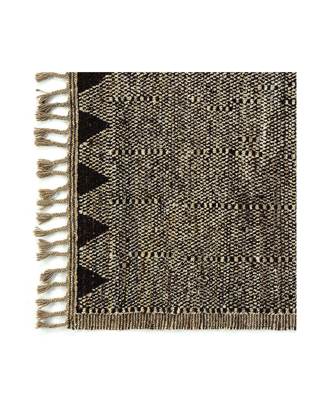 Grand Tapis Afghan ethnique chic Rectangulaire 212x310 Laine Beige Noir Avec franges Motif tribal The Handwoven