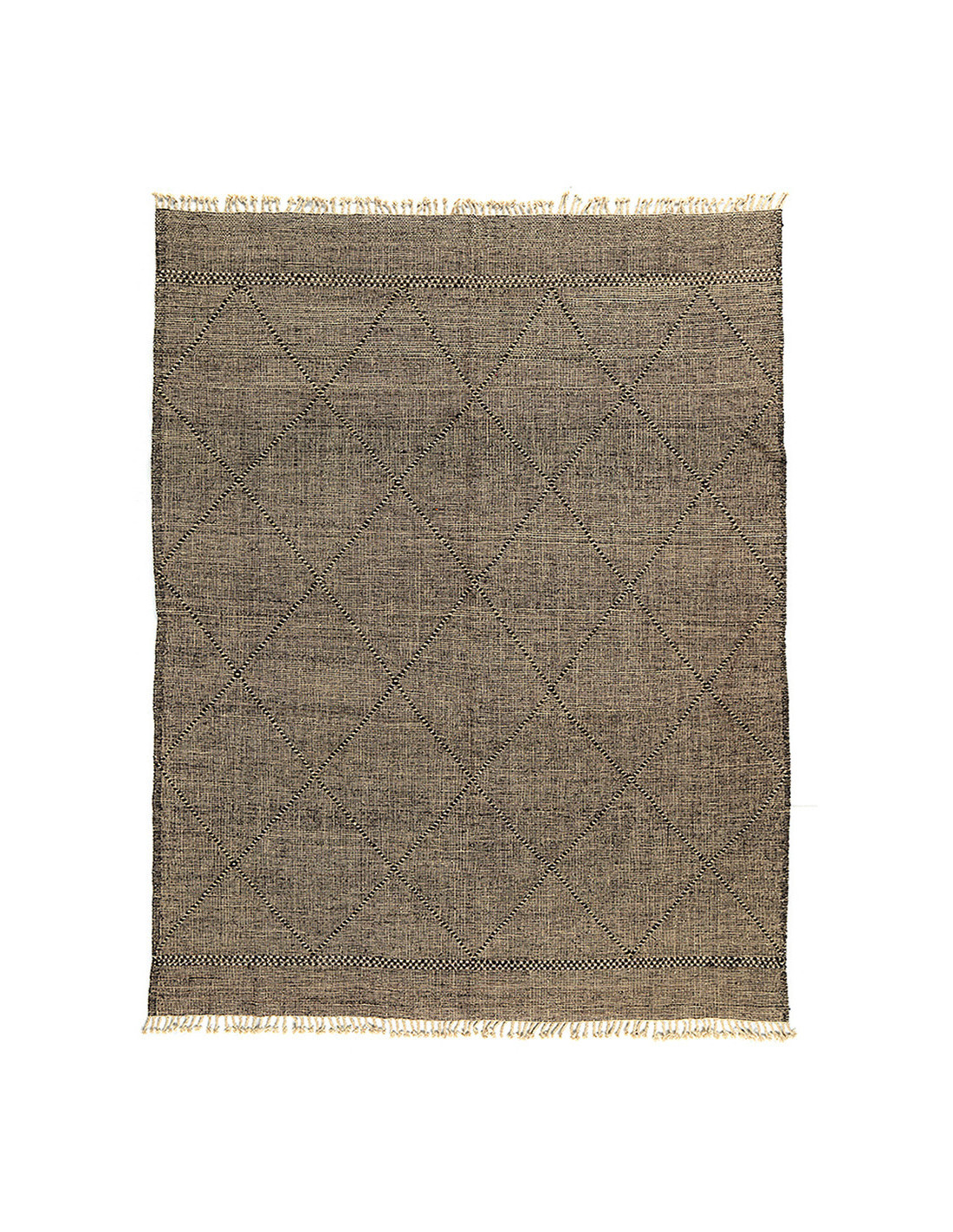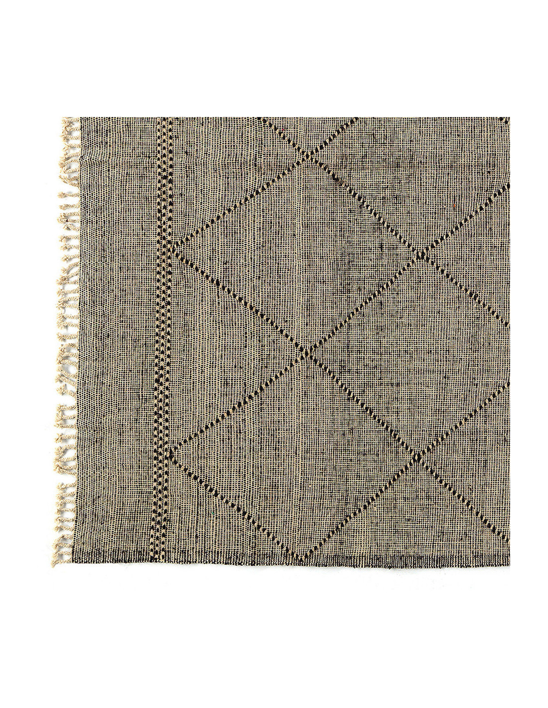 Grand Tapis Afghan ethnique chic Rectangulaire 297x384 Laine Beige Noir Avec franges Motif losanges The Handwoven