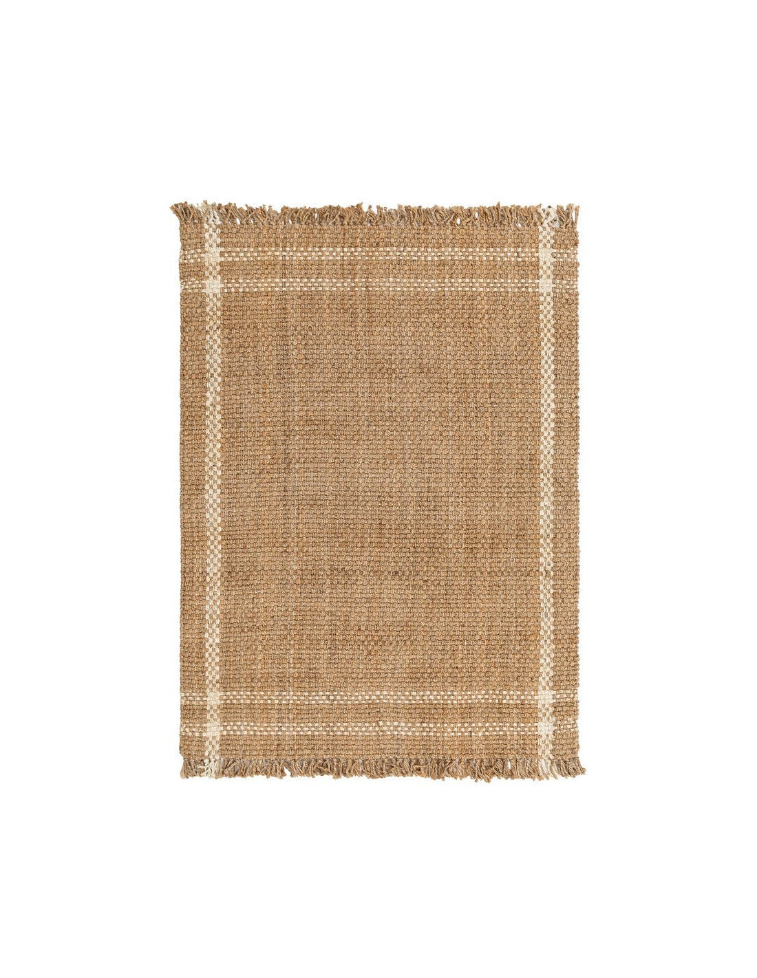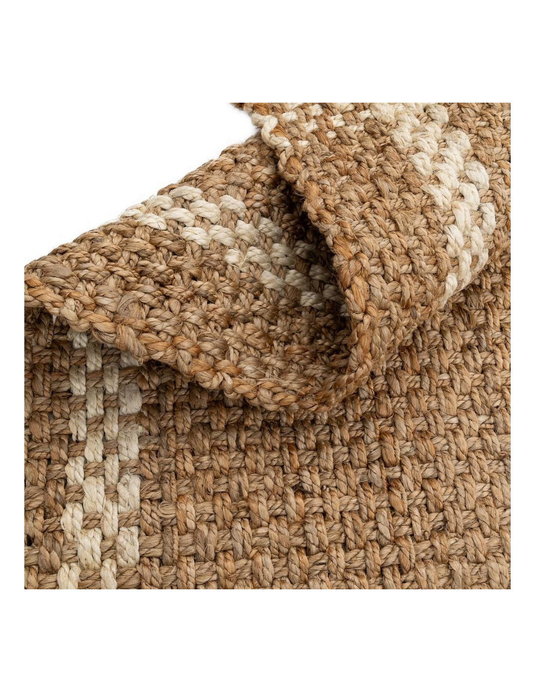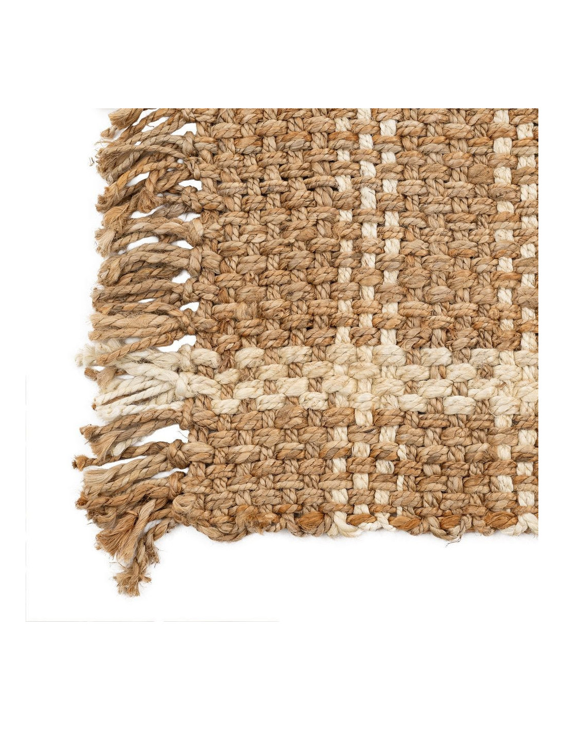 Grand Tapis bohème chic Rectangulaire 160x230 Jute Naturel Blanc Tressé Avec franges Altea