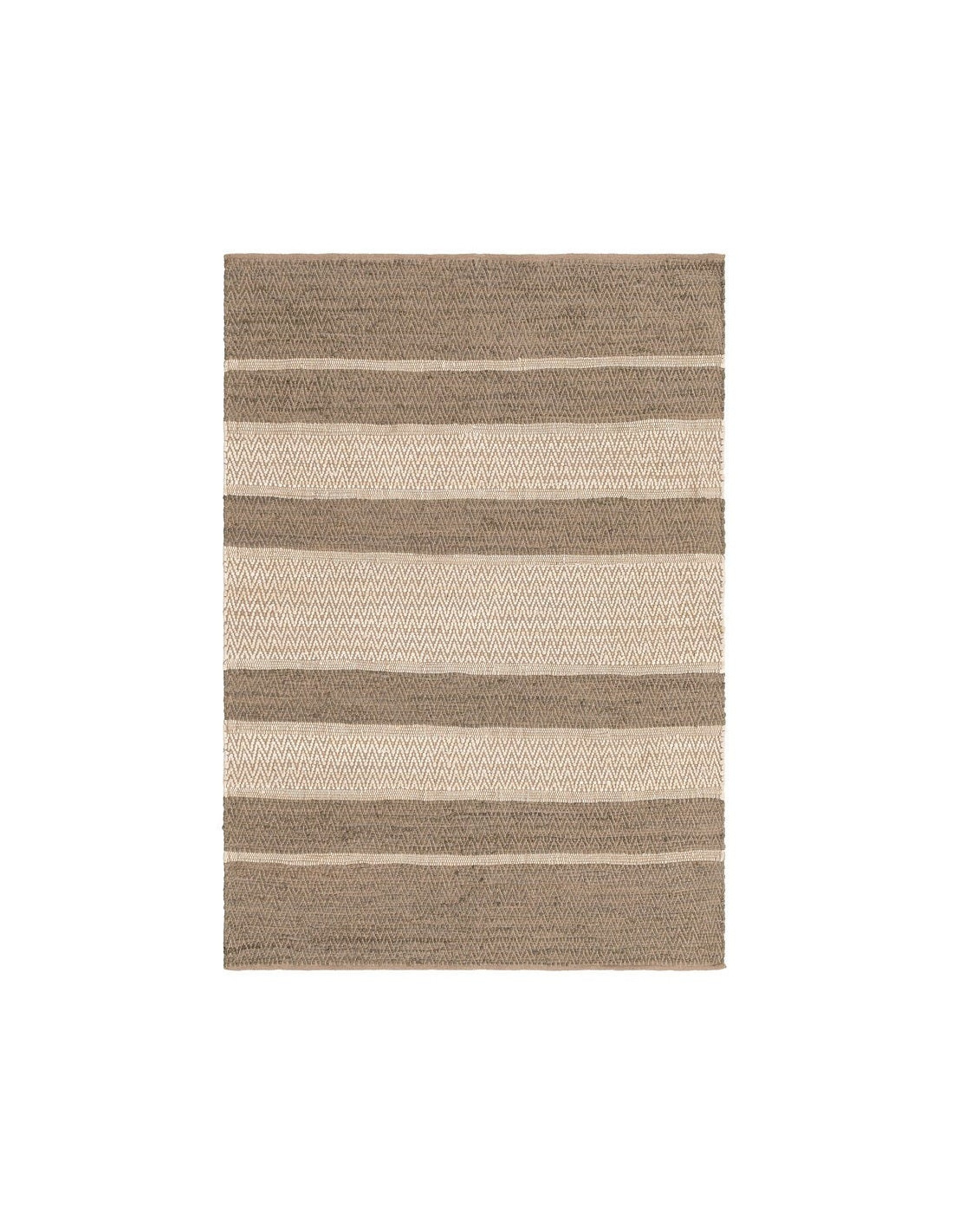 Grand Tapis bohème Rectangulaire 160x230 Coton Naturel Beige Tissé Motif rayures Calverio