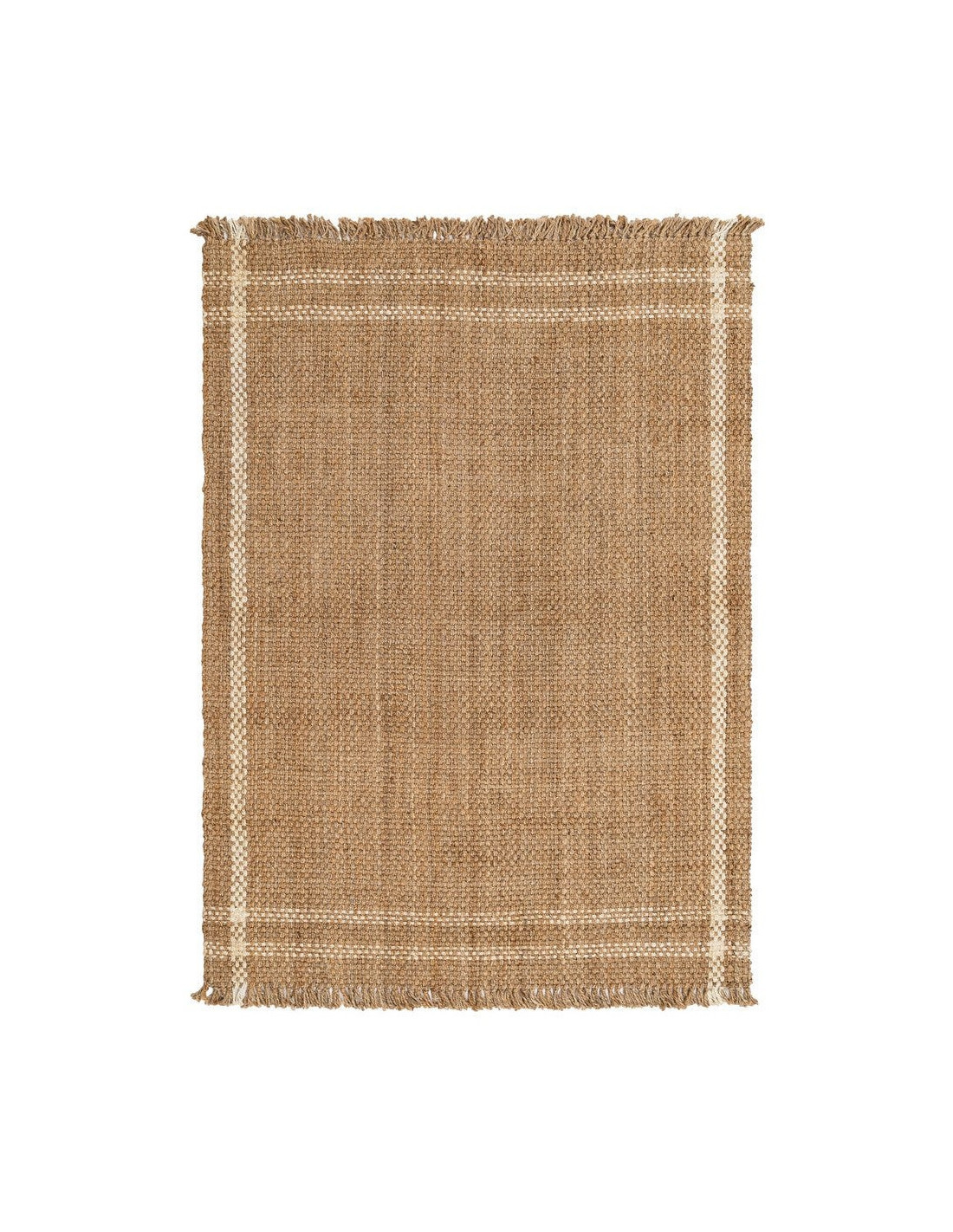 Grand Tapis bohème Rectangulaire 200x290 Naturel Blanc avec franges Raelo