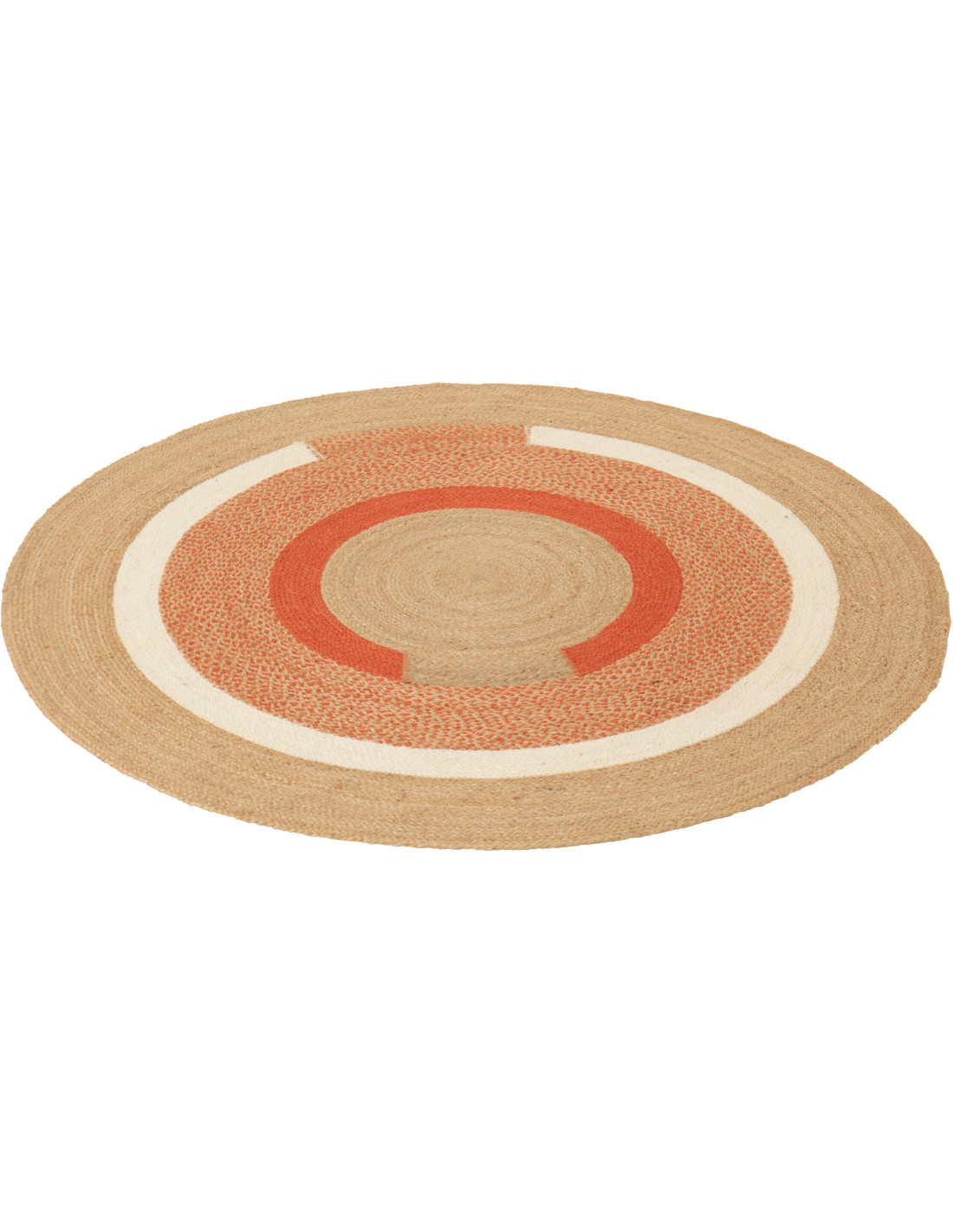 Grand Tapis Japandi Rond 150x150 Jute Naturel Orange Tressé Motif géométrique Hikariro