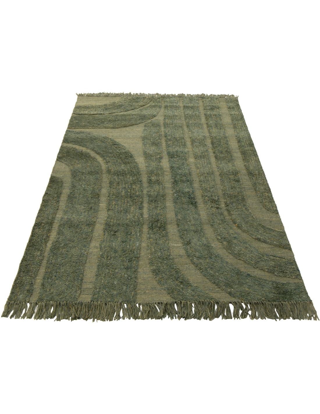 Grand Tapis moderne poils longs Rectangulaire 200x300 en Laine Vert kaki Tufté Shaggy