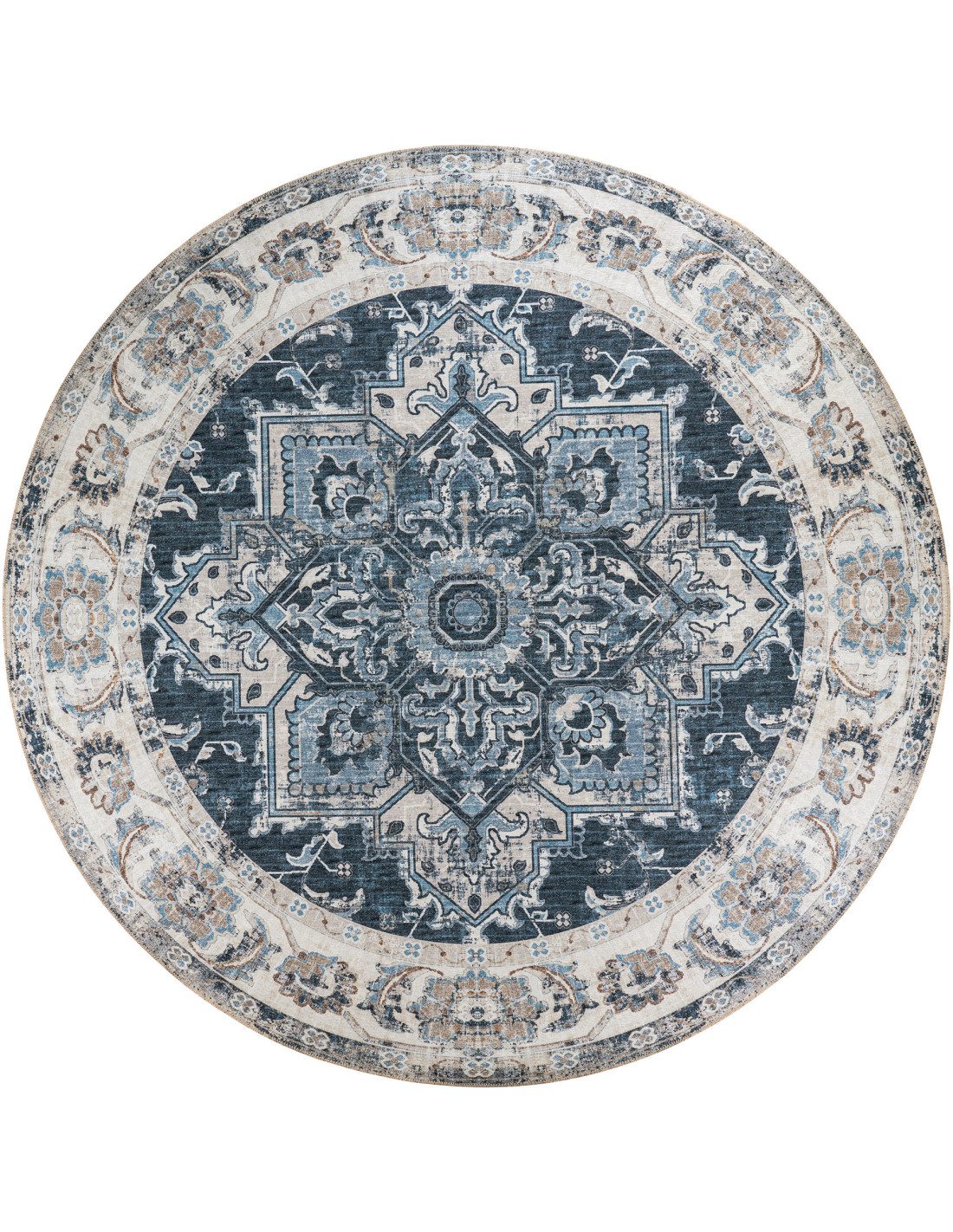 Grand Tapis oriental Rond 200x200 Chenille Polyester Bleu Havana