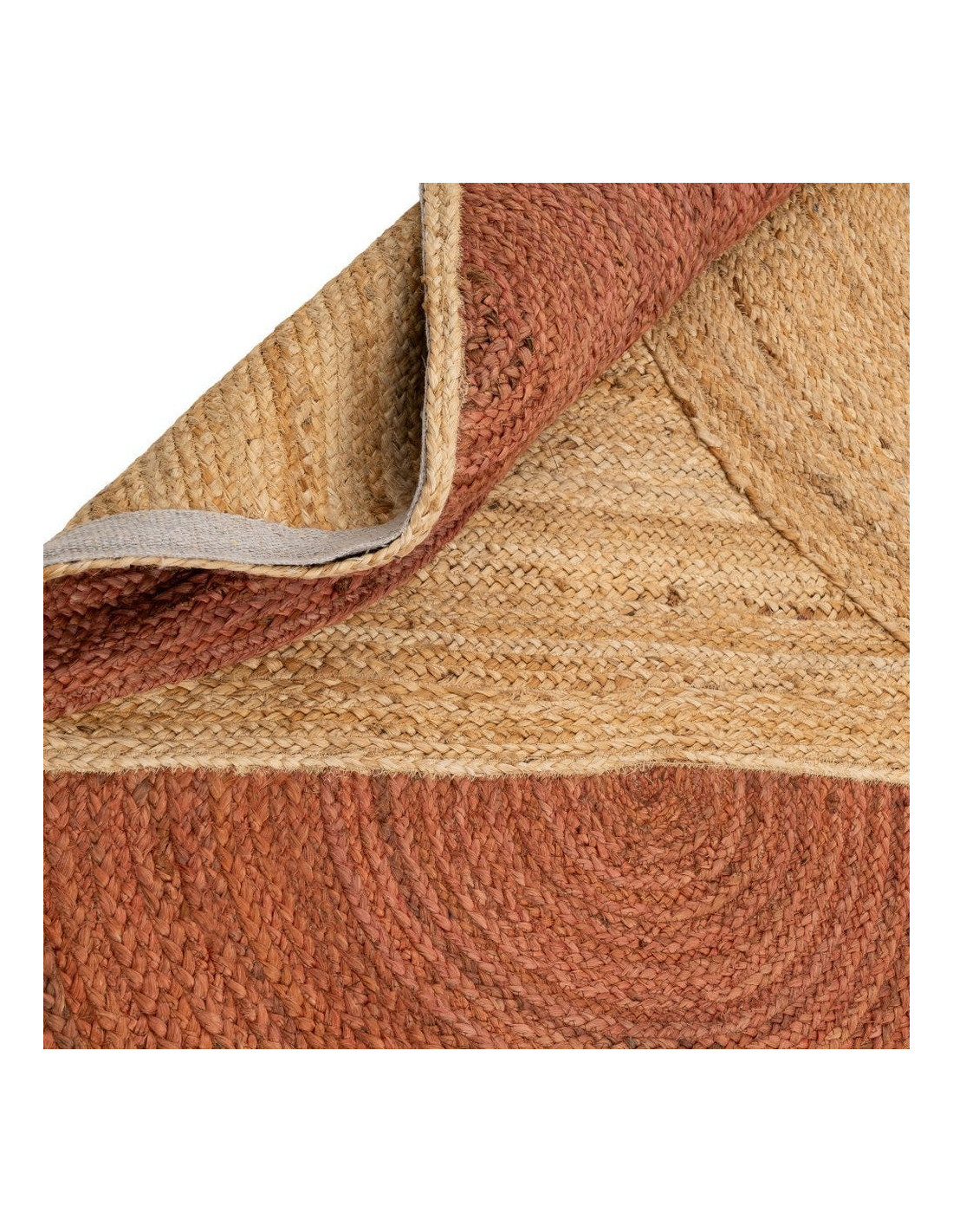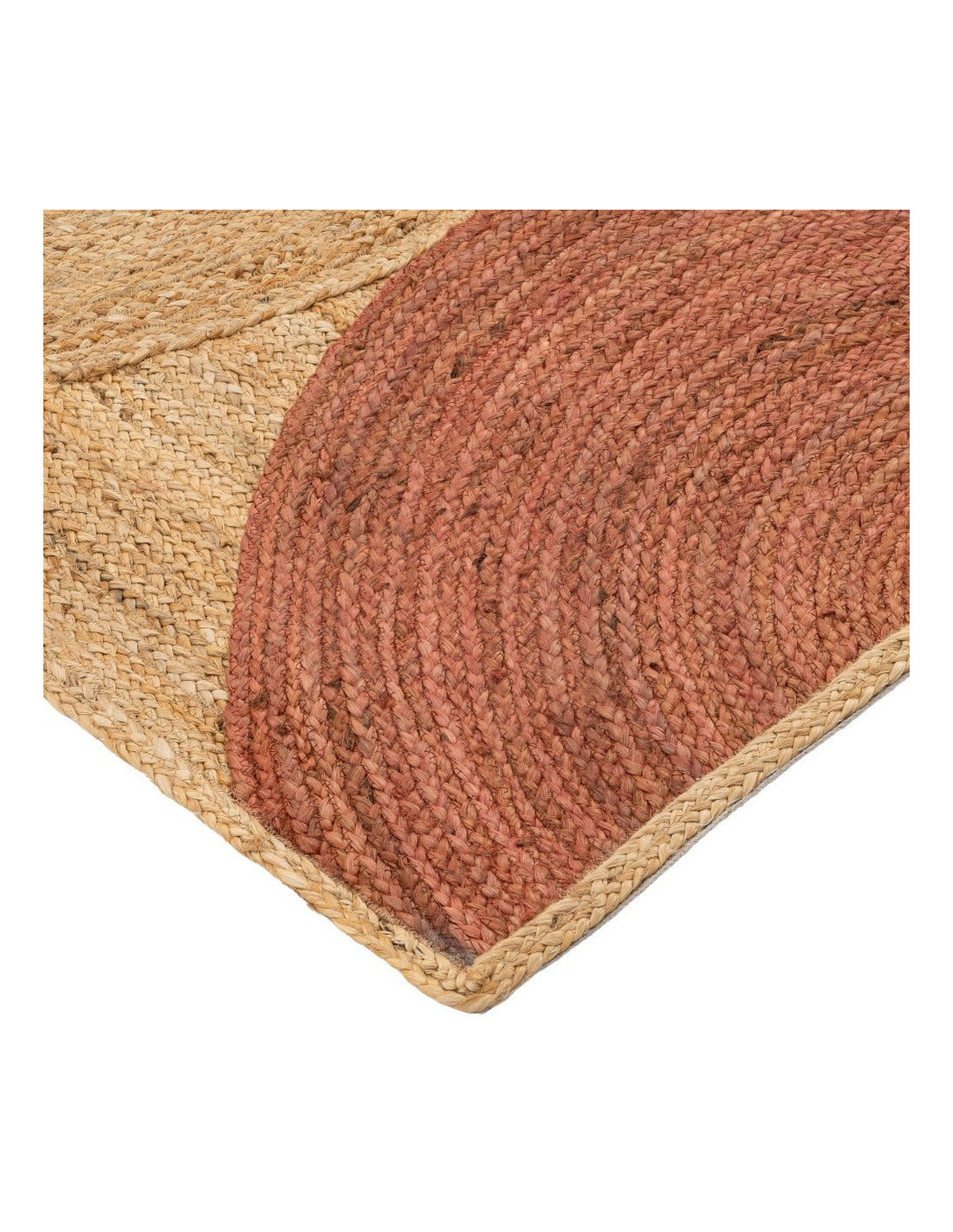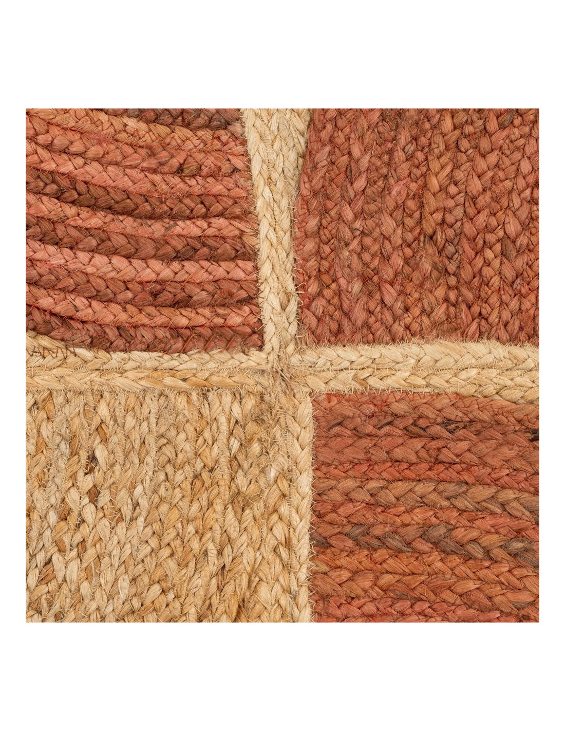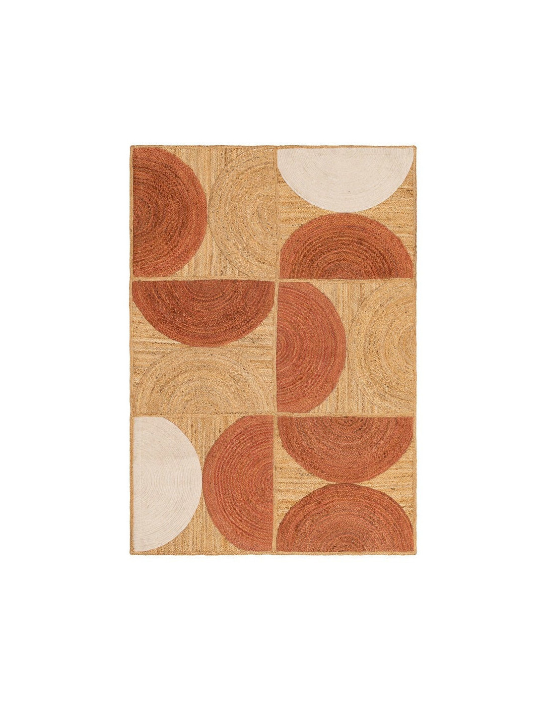 Grand Tapis rétro moderne Rectangulaire 160x230 Jute Naturel Terracotta Blanc crème Tressé Motif graphique Almonta
