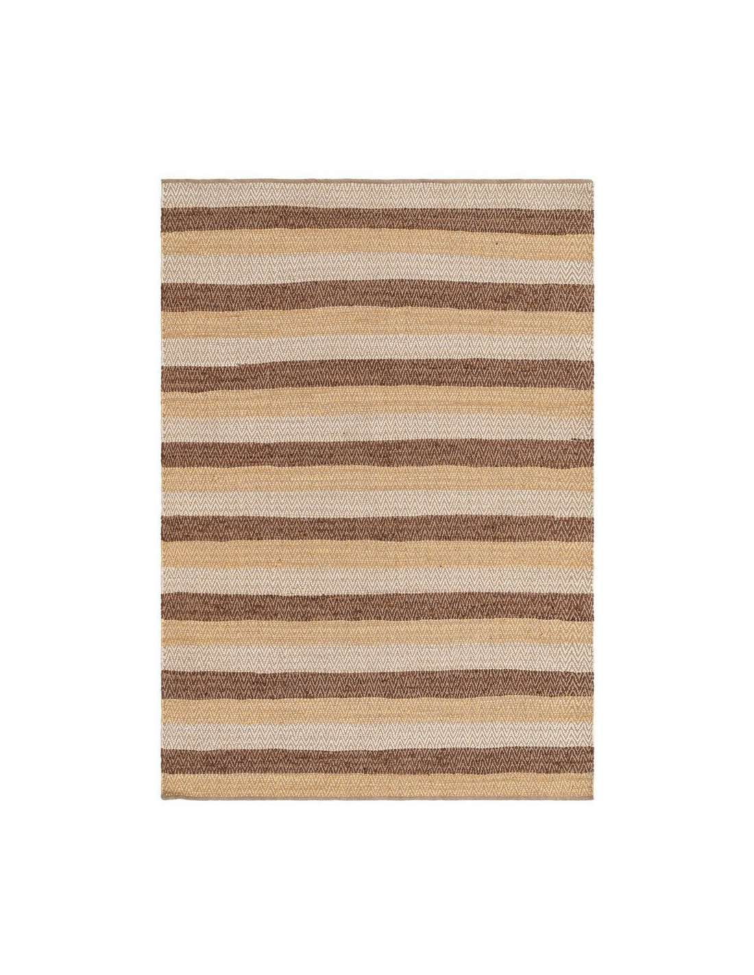 Grand Tapis XXL ethnique chic Rectangulaire 200x300 Coton Naturel Marron Tissé Motif rayures Salveyo
