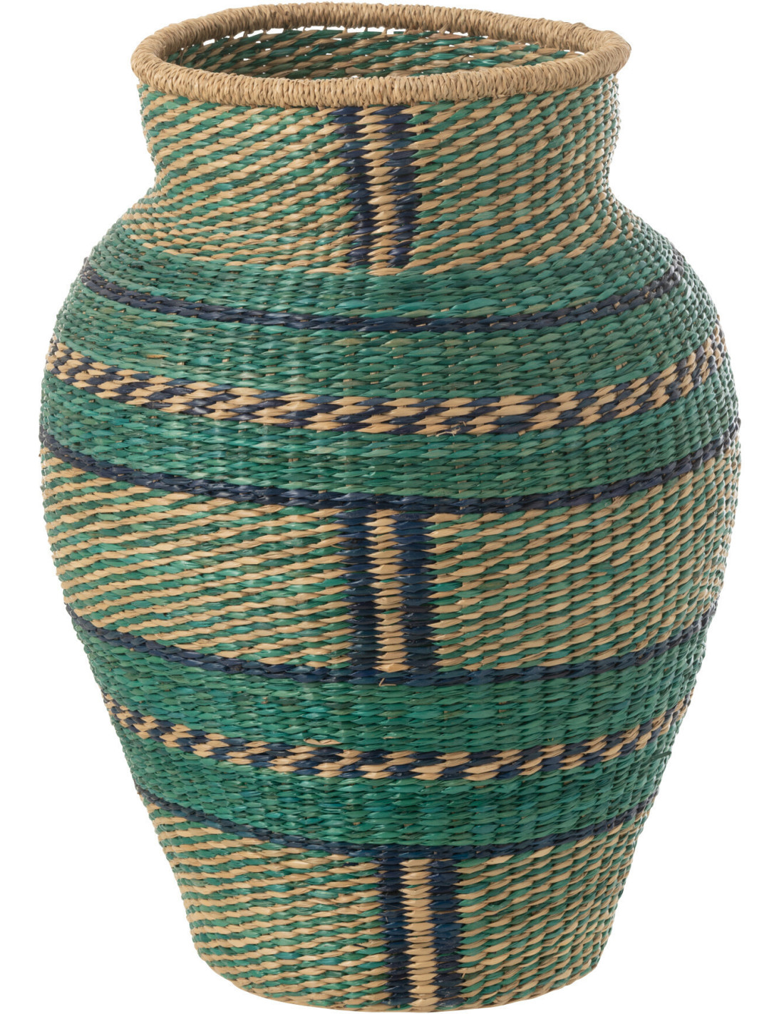 Grand Vase africain Rond Hauteur 48 cm en Jonc de mer Bleu foncé Bleu azur Tressé Motif rayures Cécile
