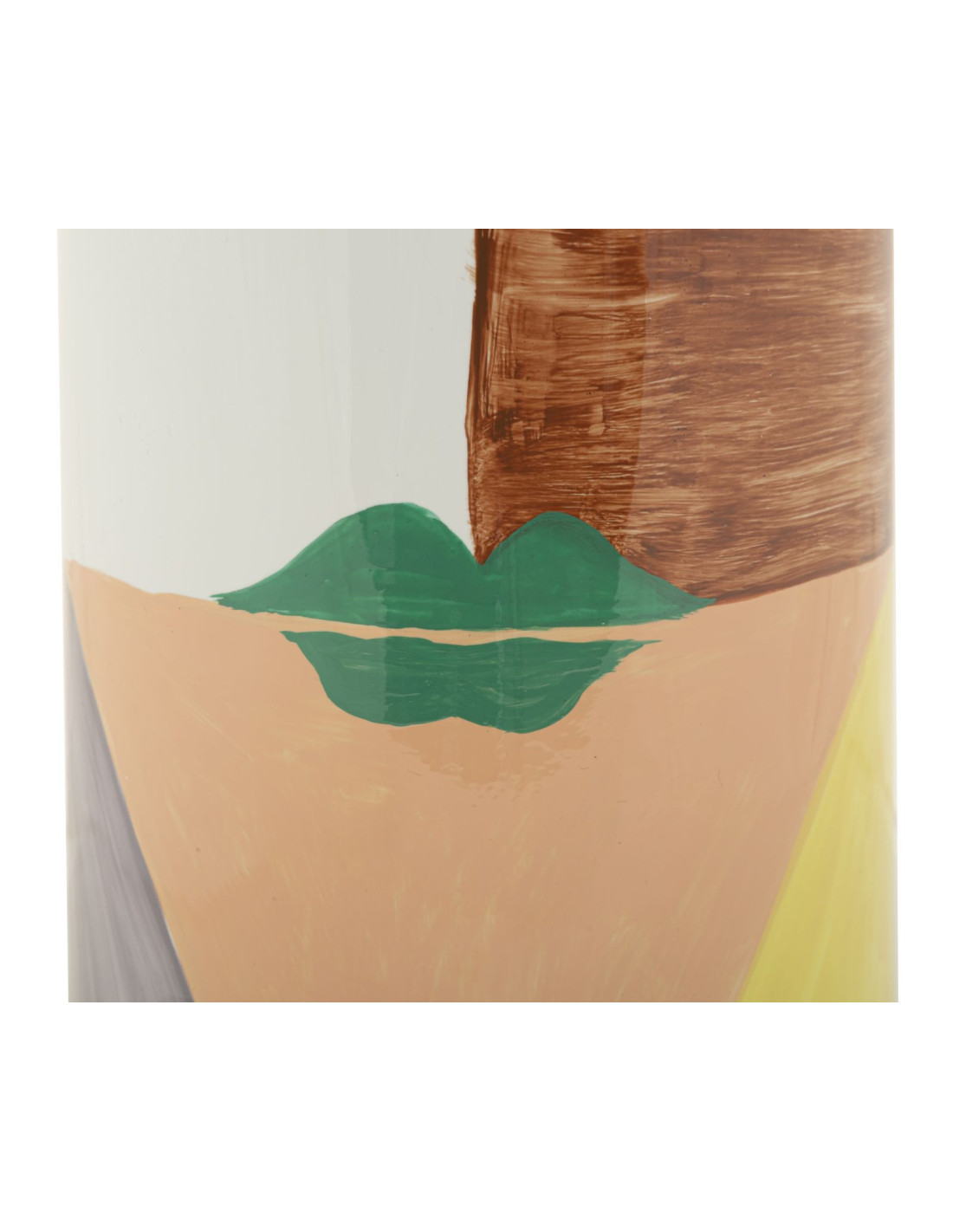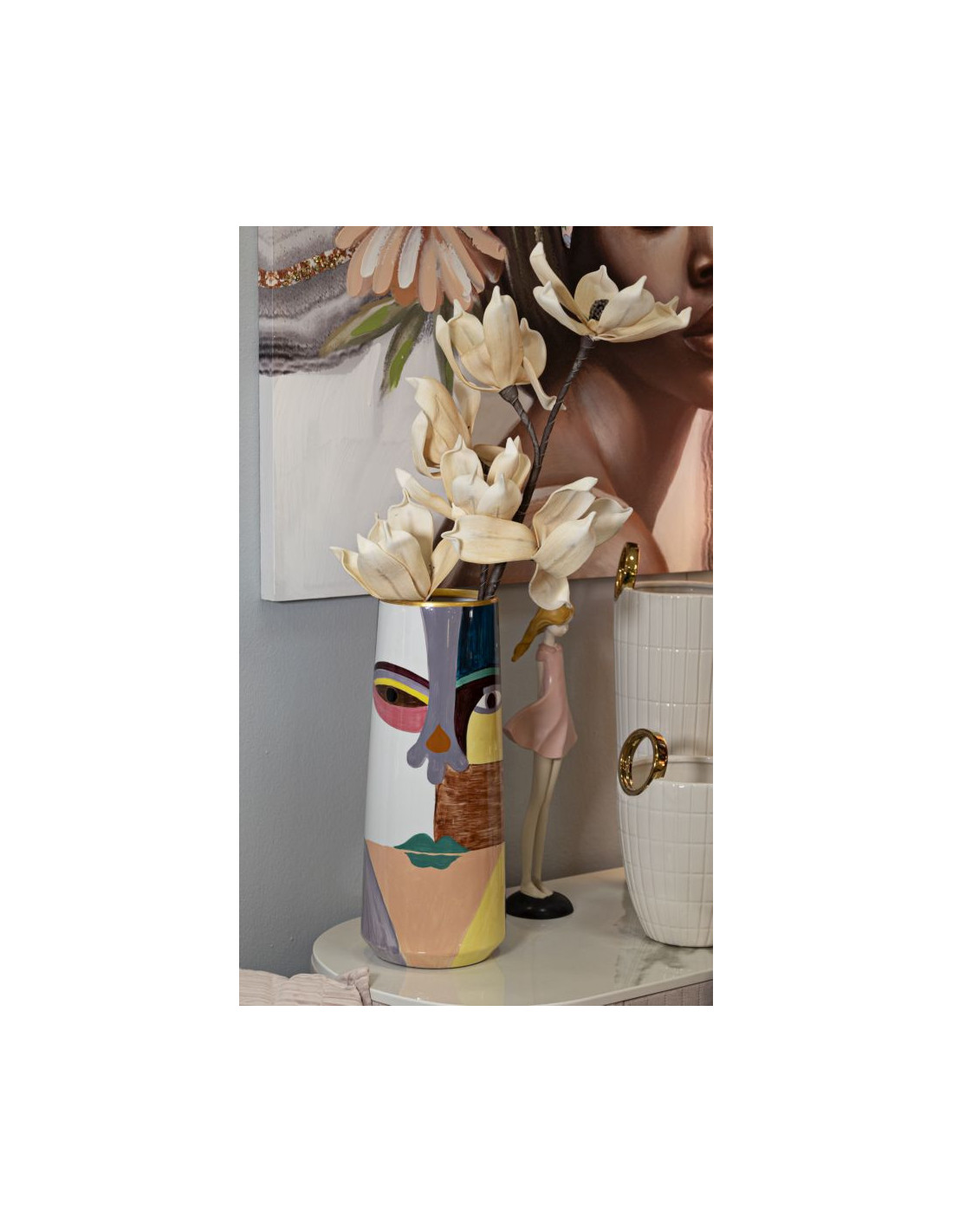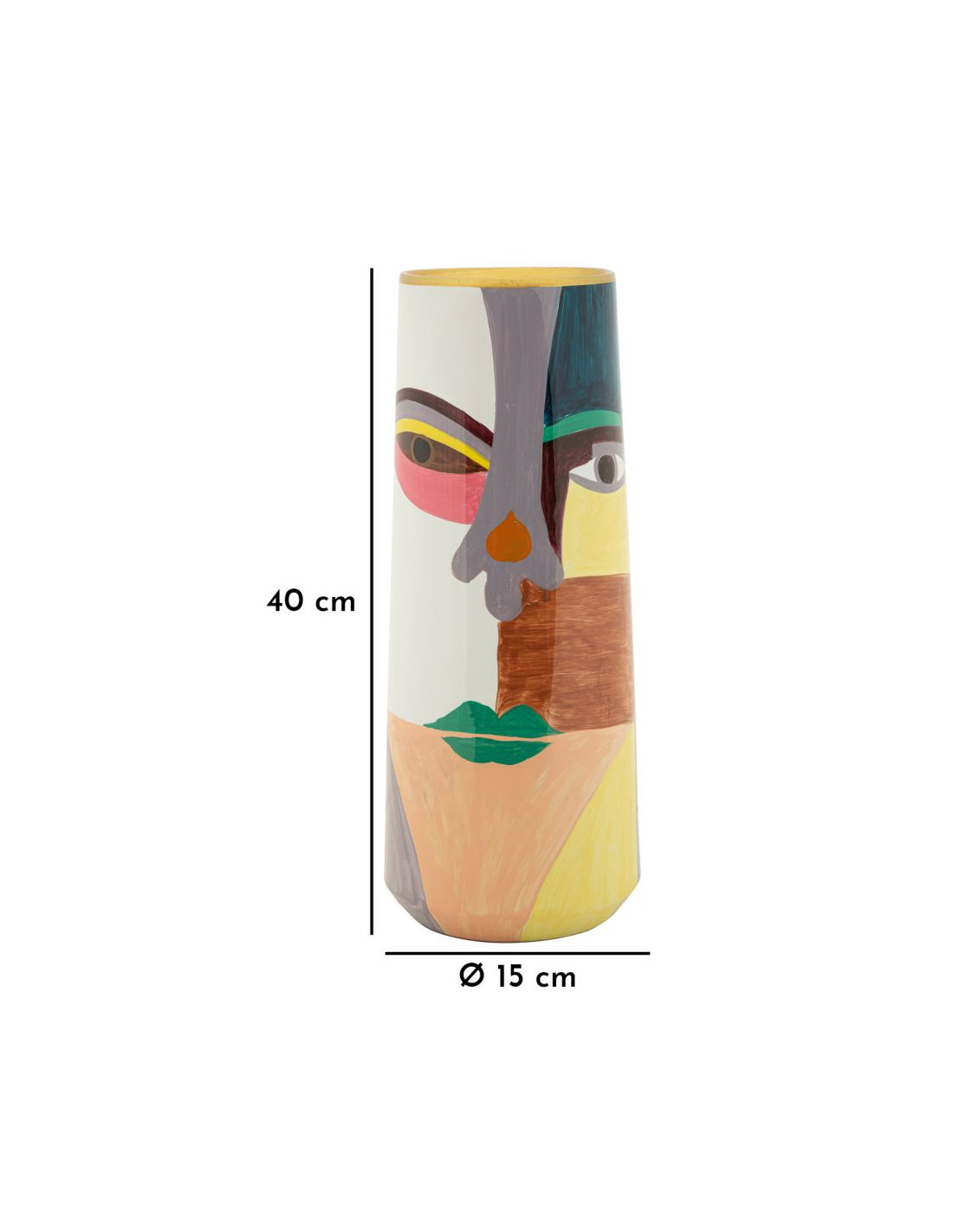 Grand Vase art moderne expressif Visage abstrait Cylindrique H 40 cm Céramique Multicolore Picassy