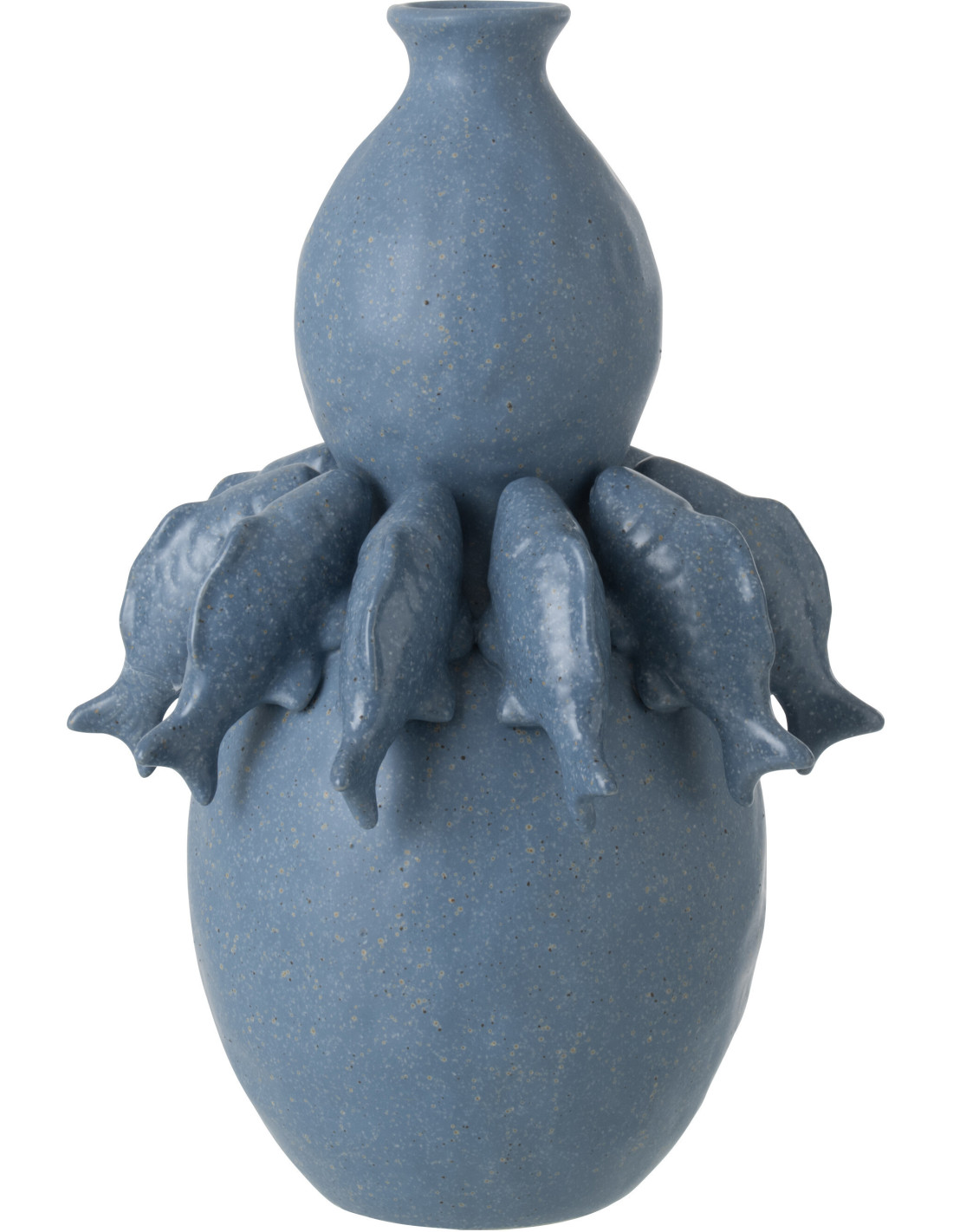 Grand Vase bord de mer méditerranéen Poissons H 37 cm Céramique Bleu Octalya