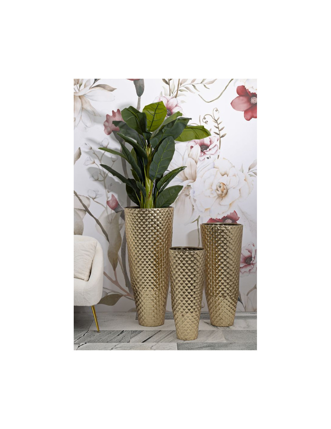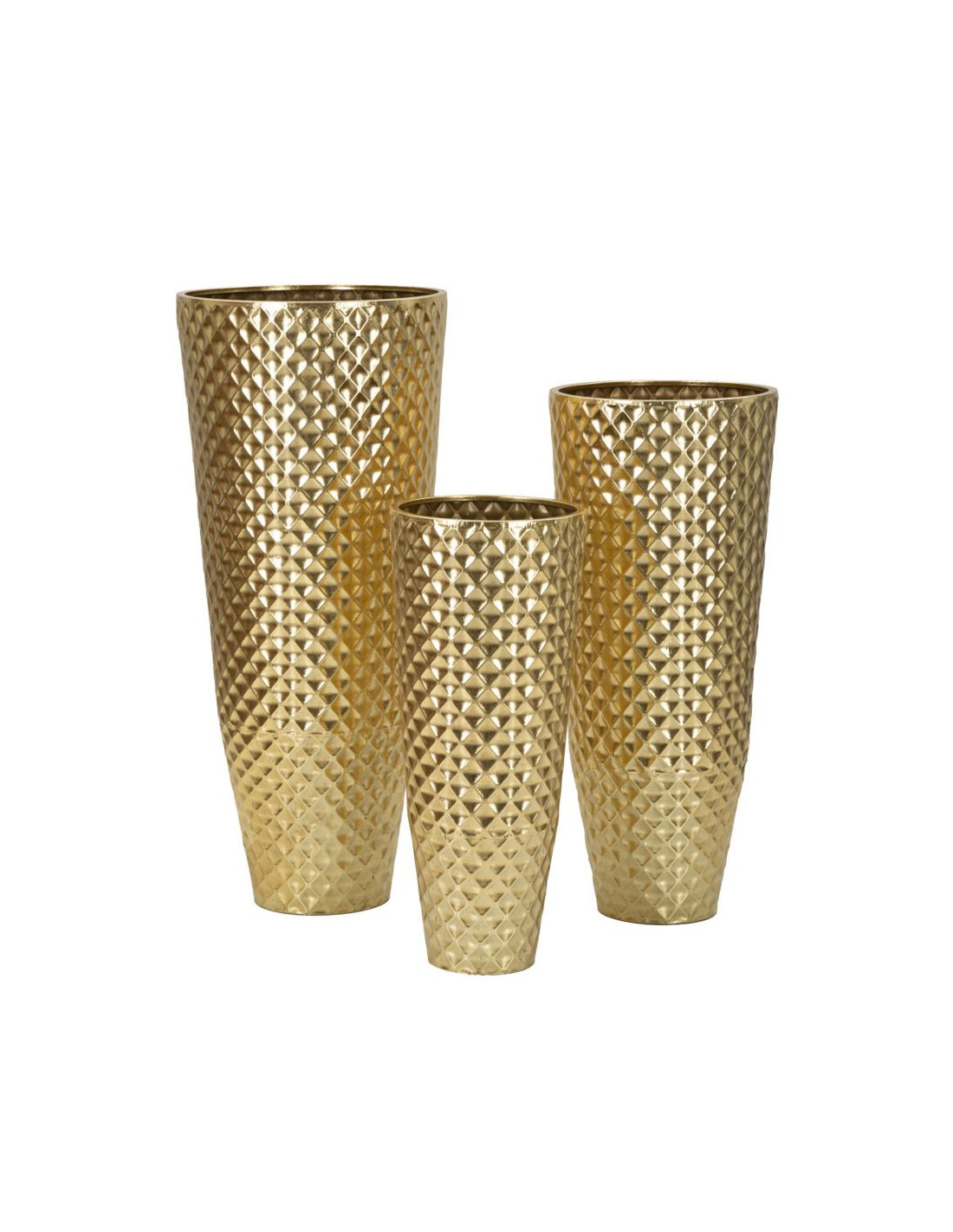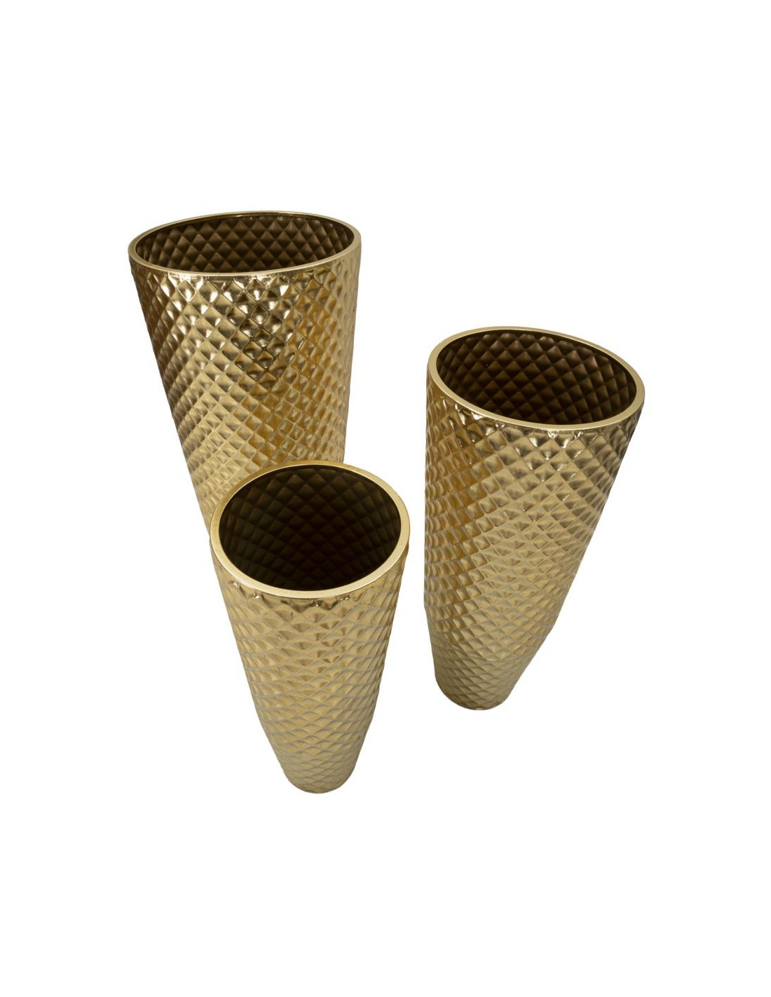 Grand Vase déco haut moderne Rond en Métal Doré Brillant Glotty Tris (Lot de 3)