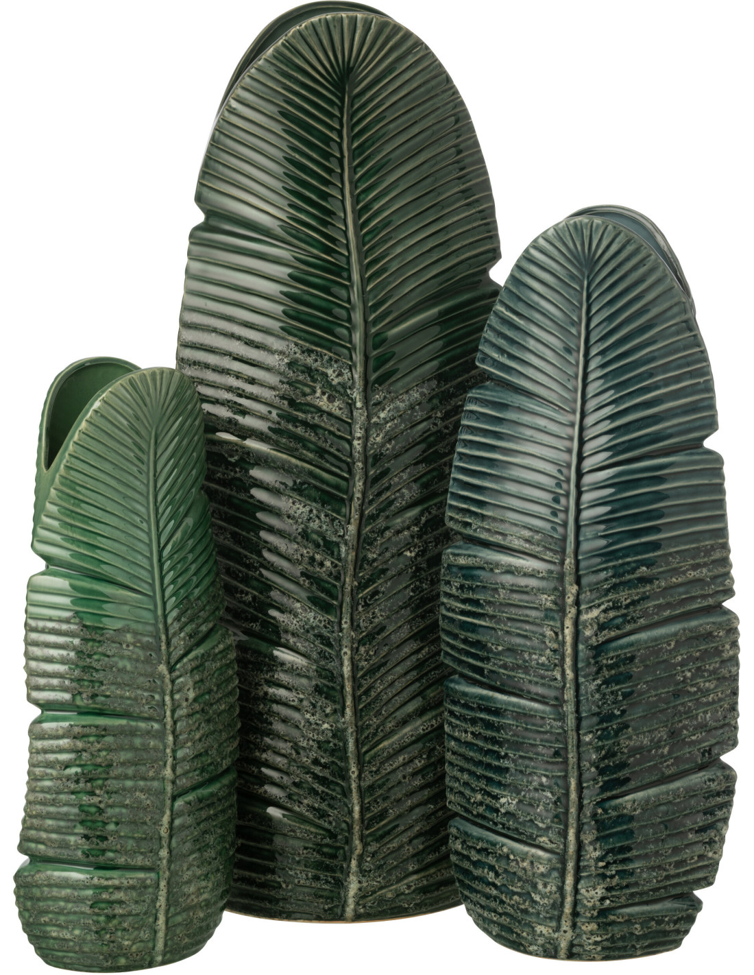 Grand Vase design original Feuille H 60 cm Grès Vert foncé Palmoréna