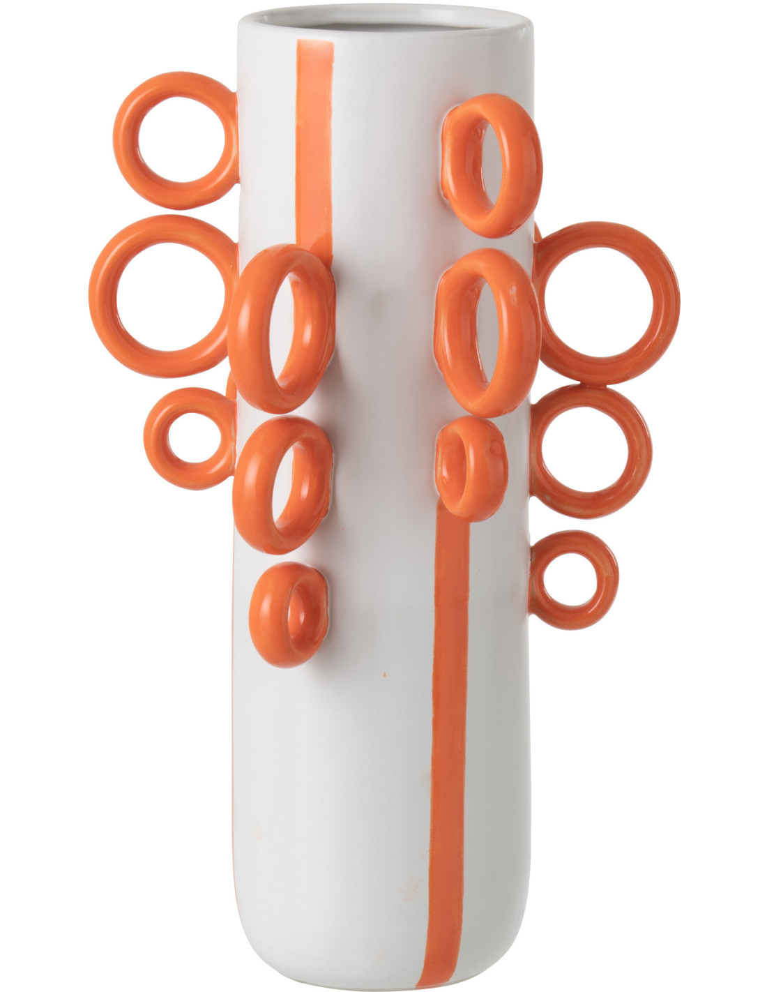 Grand Vase design pop Cylindrique H 57 cm Céramique Blanc Orange Motif rayures Ringora