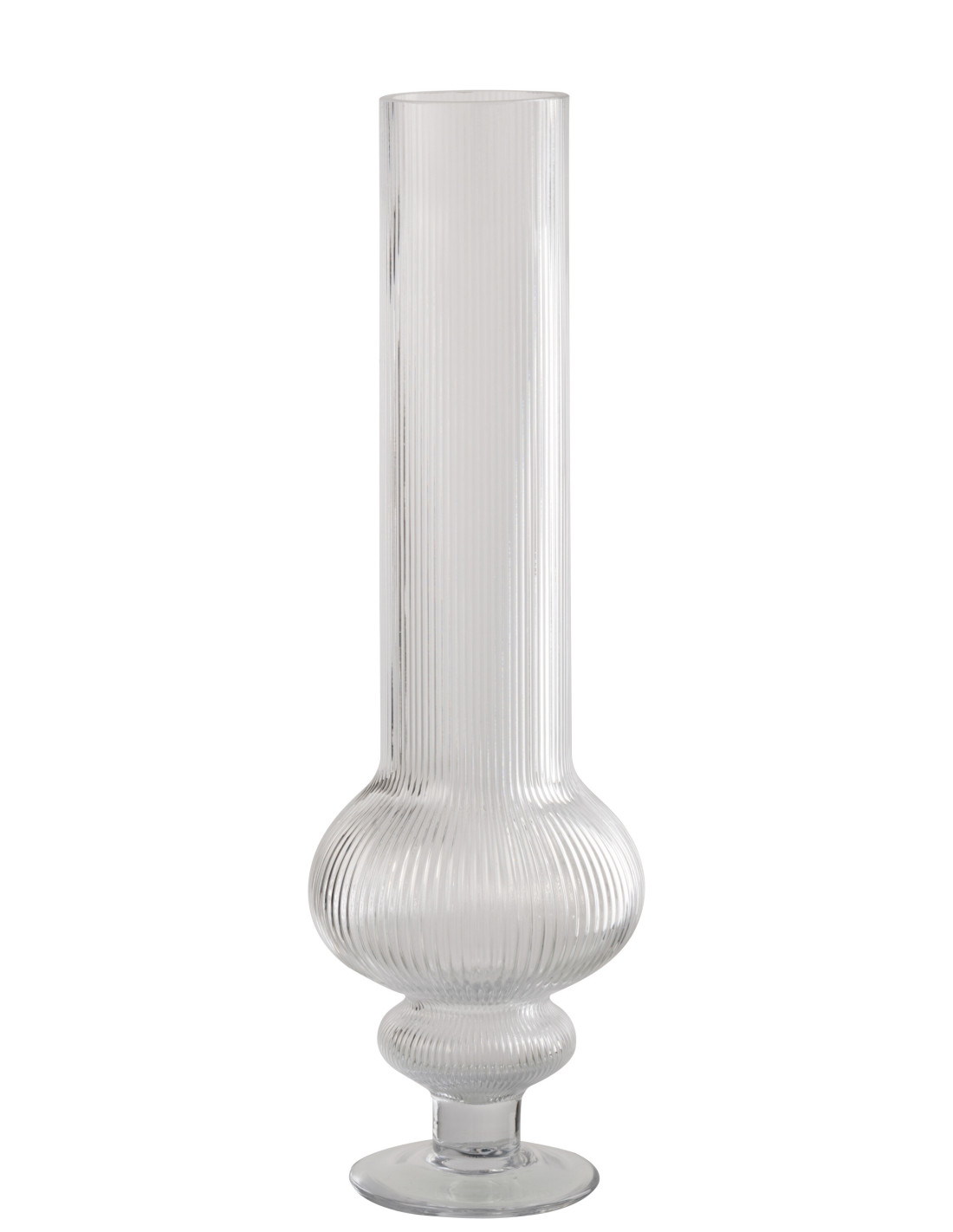 Grand Vase design sur pied Cylindrique H 50 cm Verre Transparent Côtelé Ada
