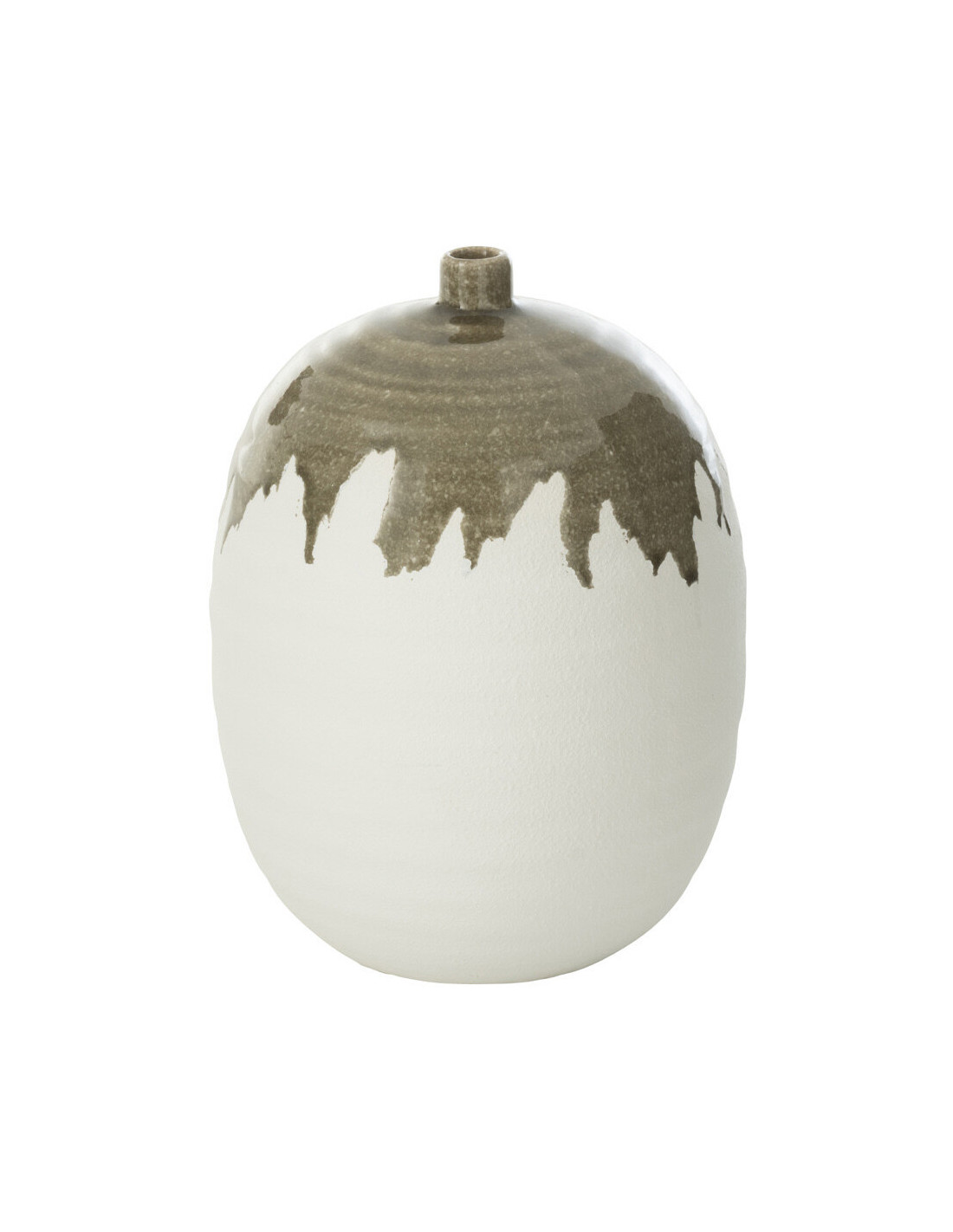 Grand Vase moderne bicolore Rond Hauteur 31 cm en Argile Vert olive Blanc Olea