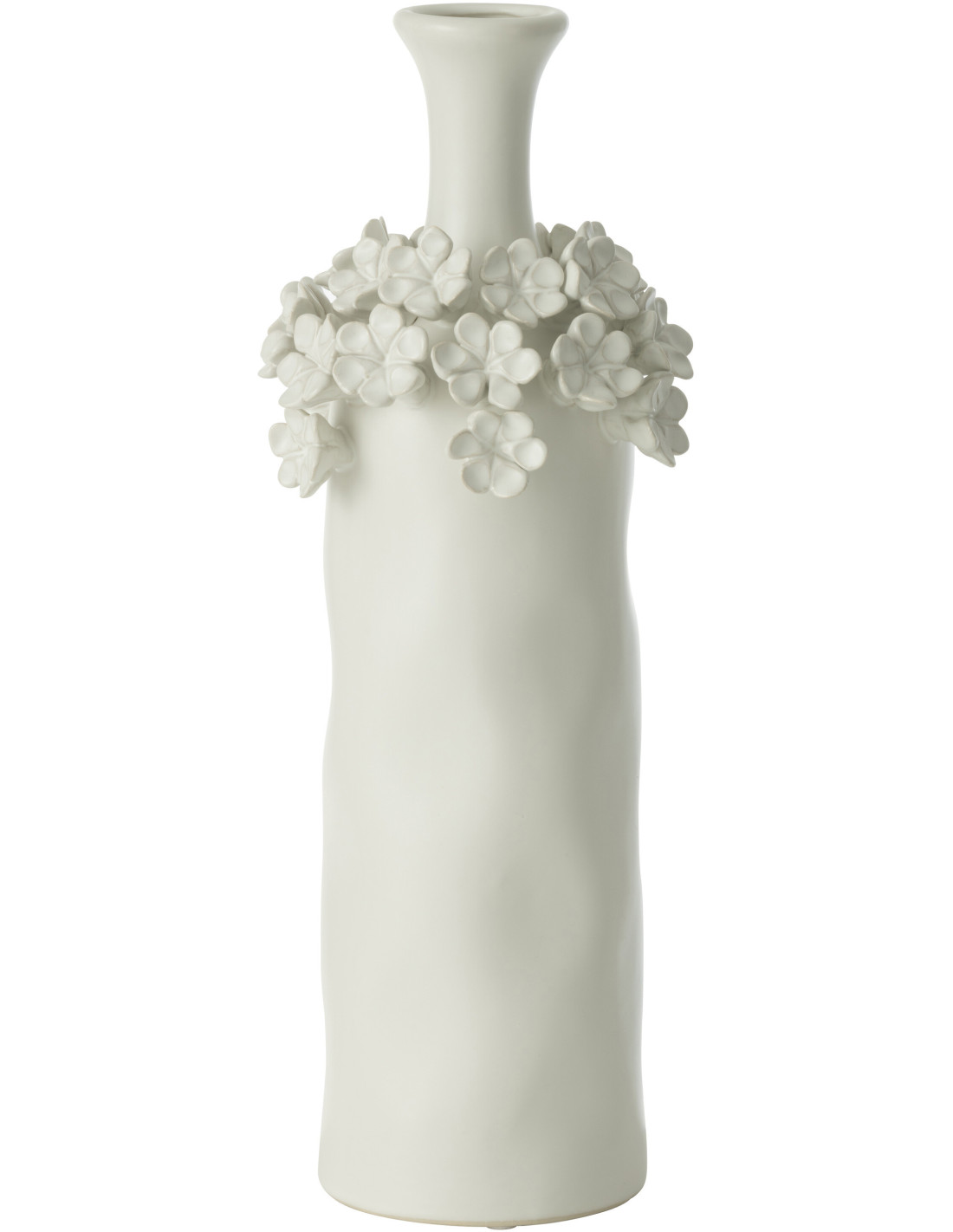 Grand Vase moderne Bouteille Hauteur 40 cm en Céramique Blanc Motif fleurs Yucca