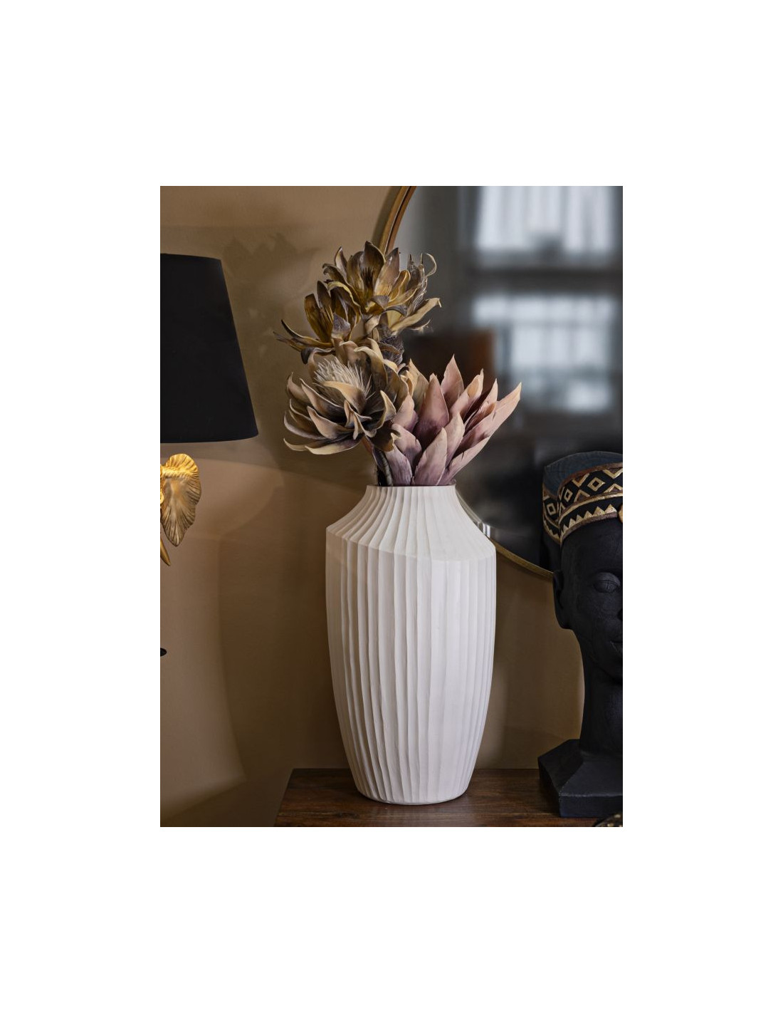 Grand Vase moderne Rond Hauteur 50 cm Magnesium oxide Blanc crème Ice