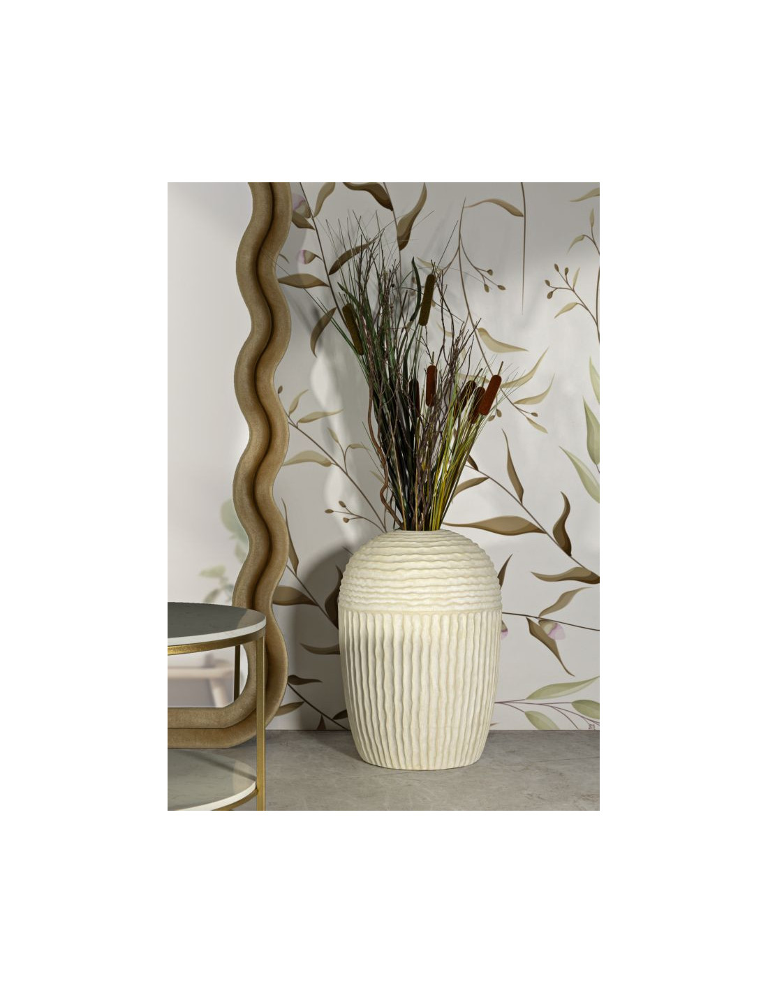 Grand Vase moderne Rond Hauteur 56 cm Magnesium Oxide Blanc crème Motif strié Icicle