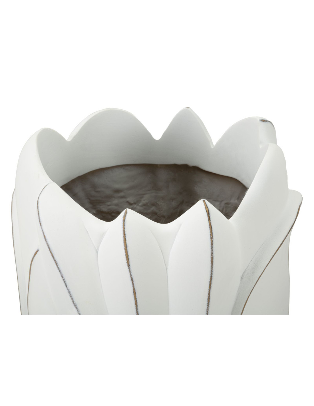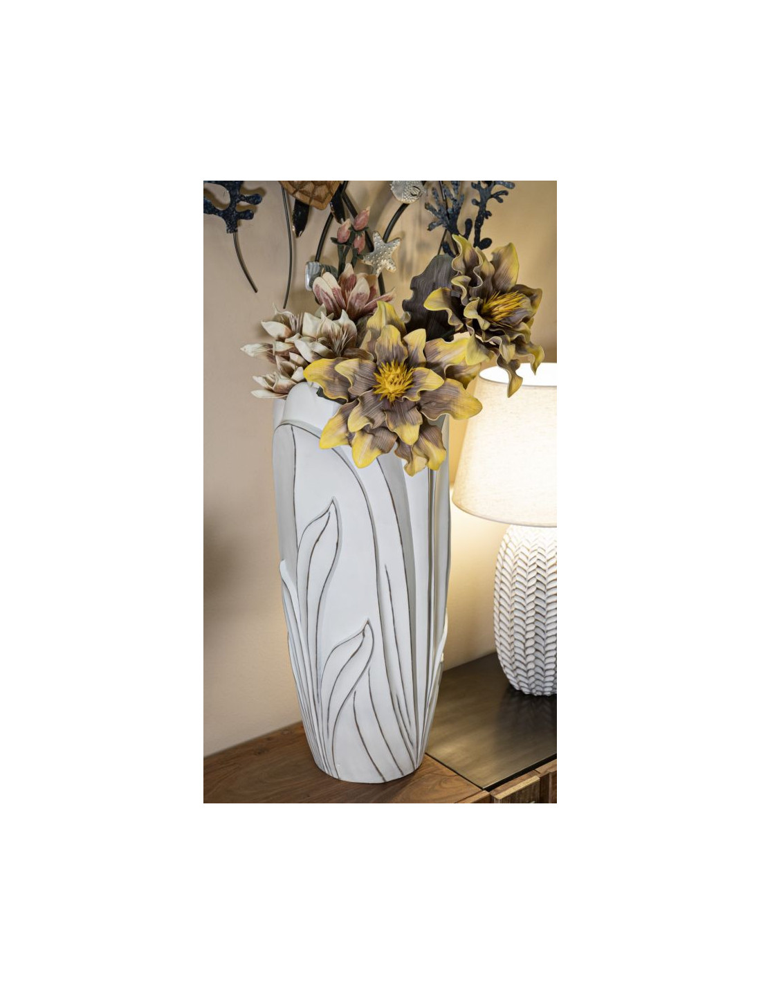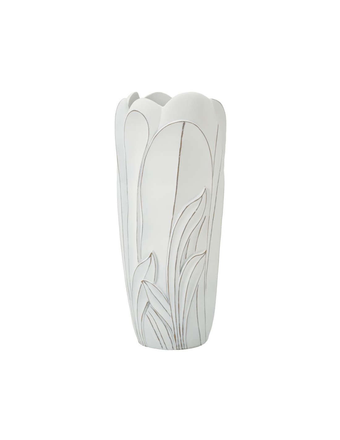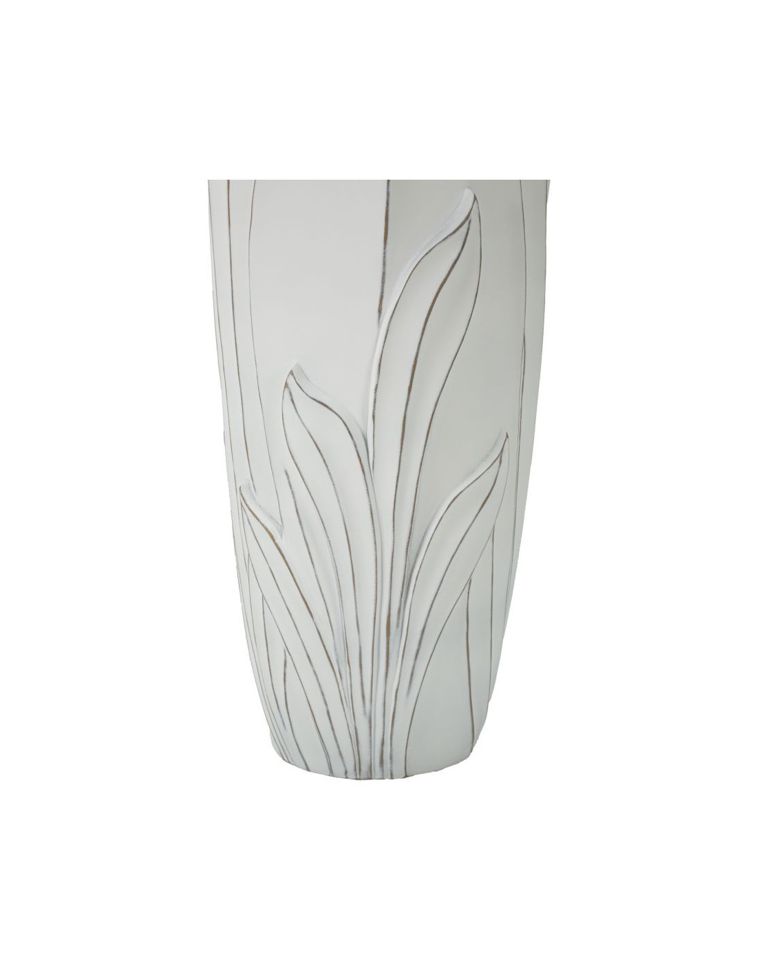 Grand Vase moderne Rond Hauteur 69 cm en Résine Blanc Patiné Motif feuilles Gardy
