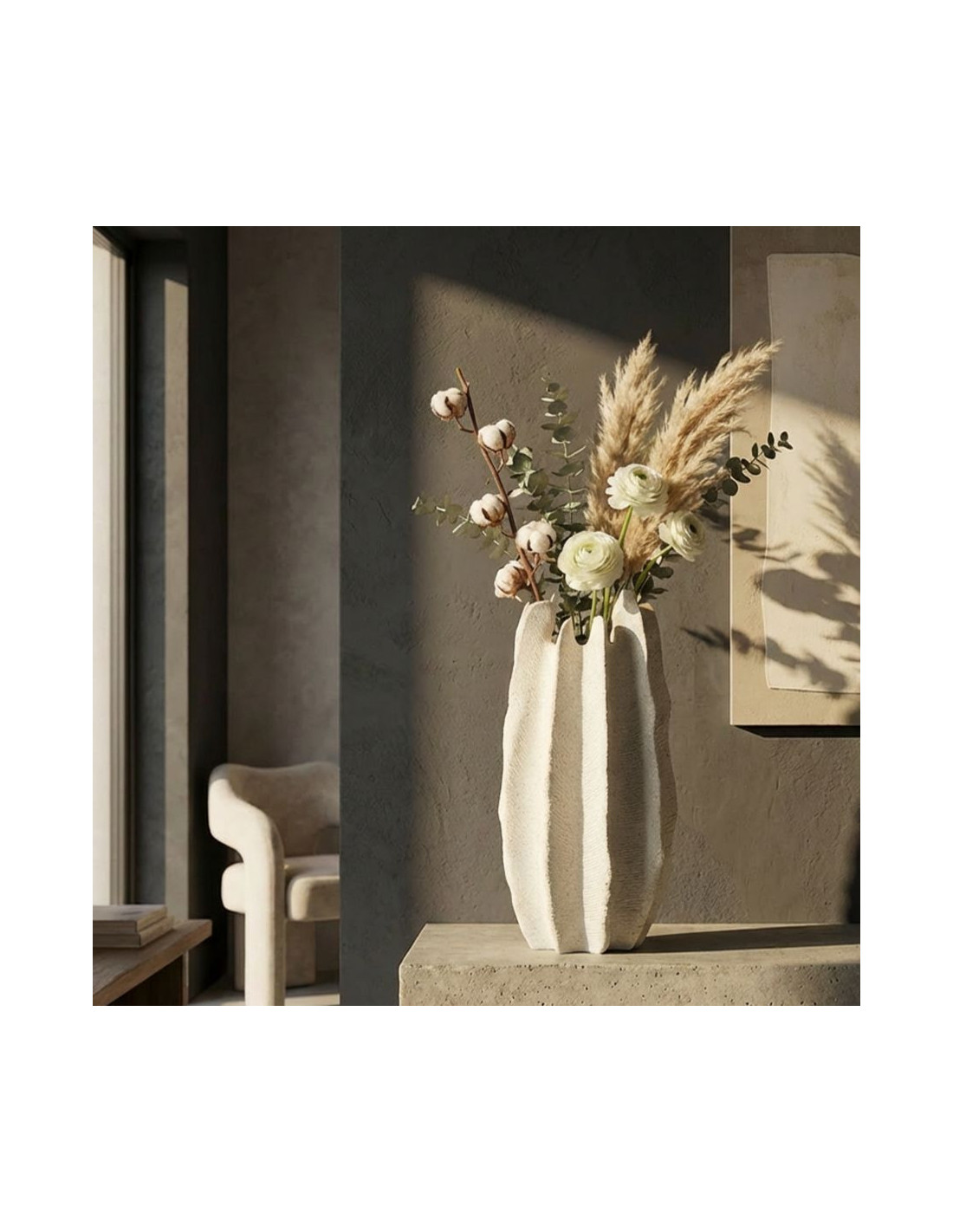 Grand Vase moderne style bord de mer Organique H 50 cm Résine Beige Moucheté Ester