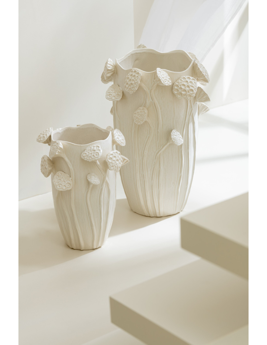 Grand Vase original Lotus Rond Hauteur 51 cm en Argile Beige Botanica - 1
