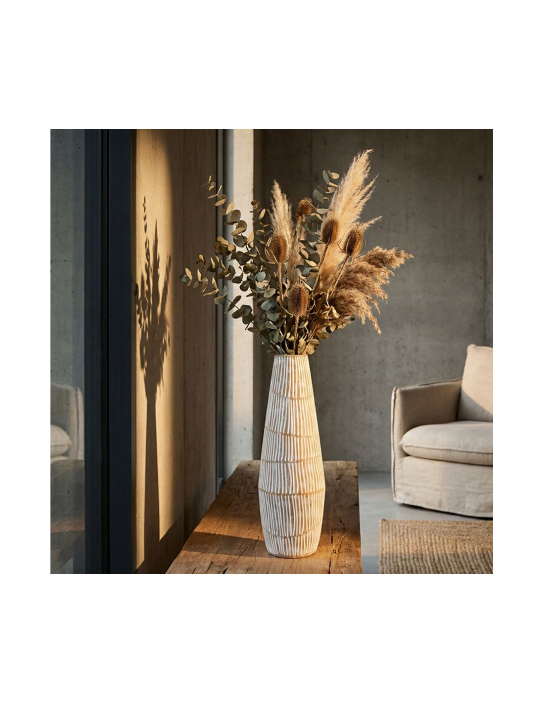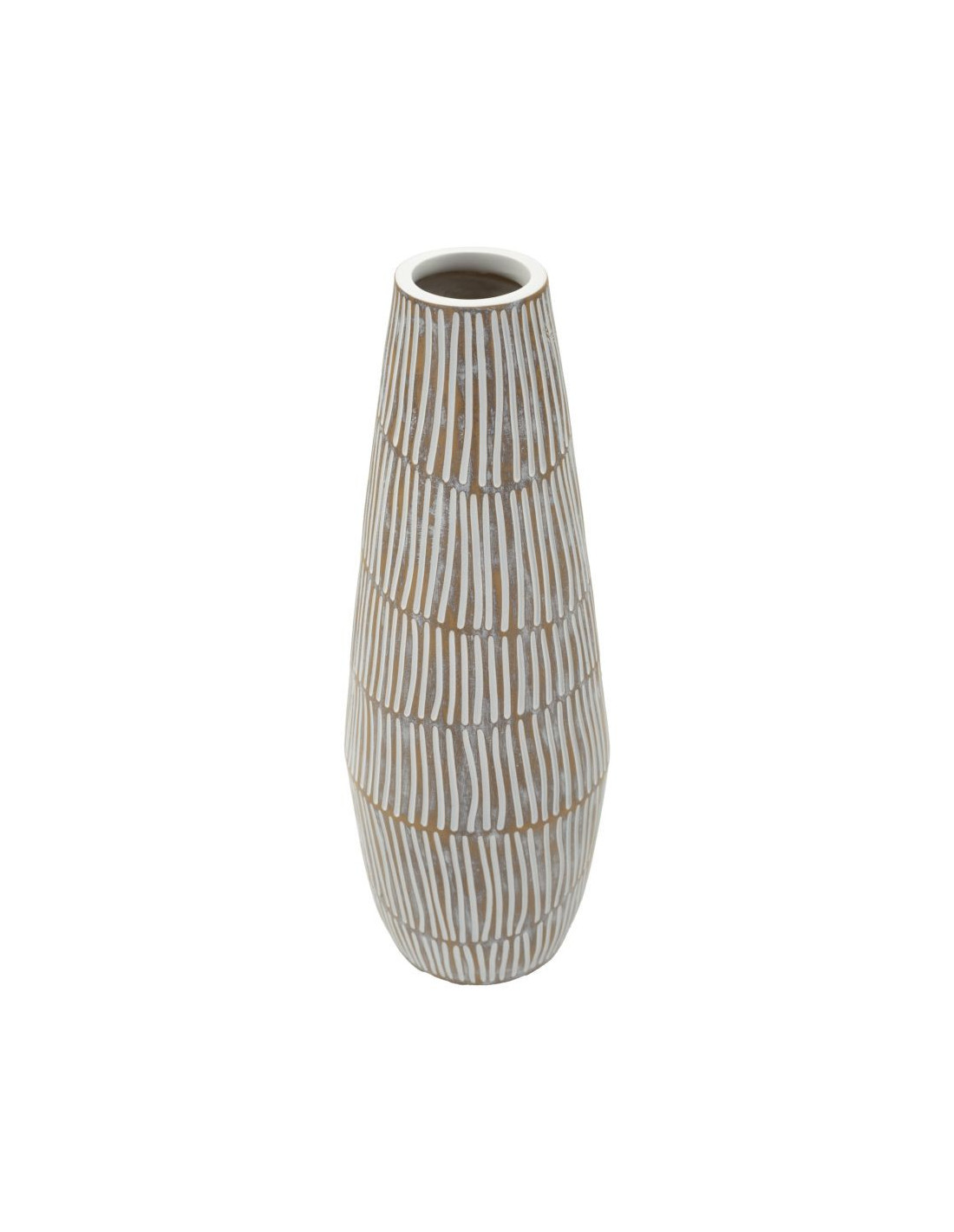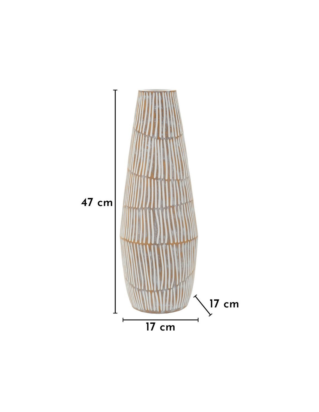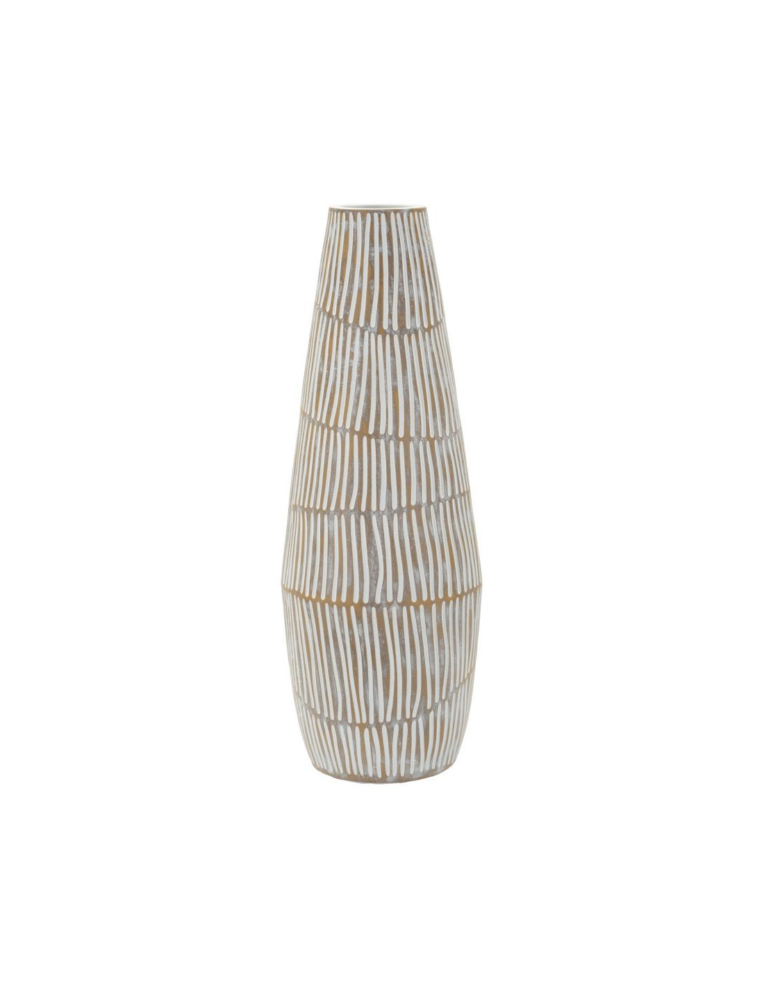 Grand Vase Style ethnique Conique H 47 cm Résine Blanc Patiné Hanoi