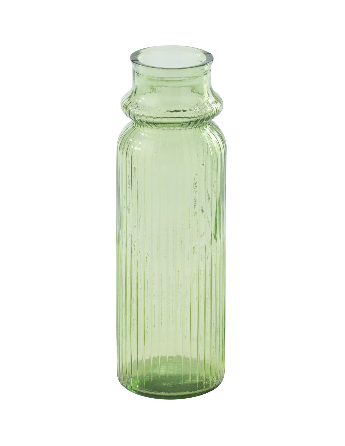 Grand Vase style provençal Cylindrique H 45 cm Verre Vert clair Motif lignes Bellora