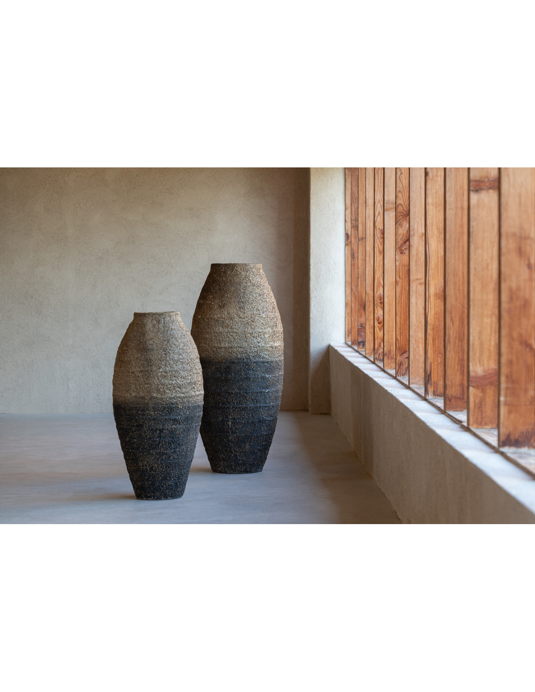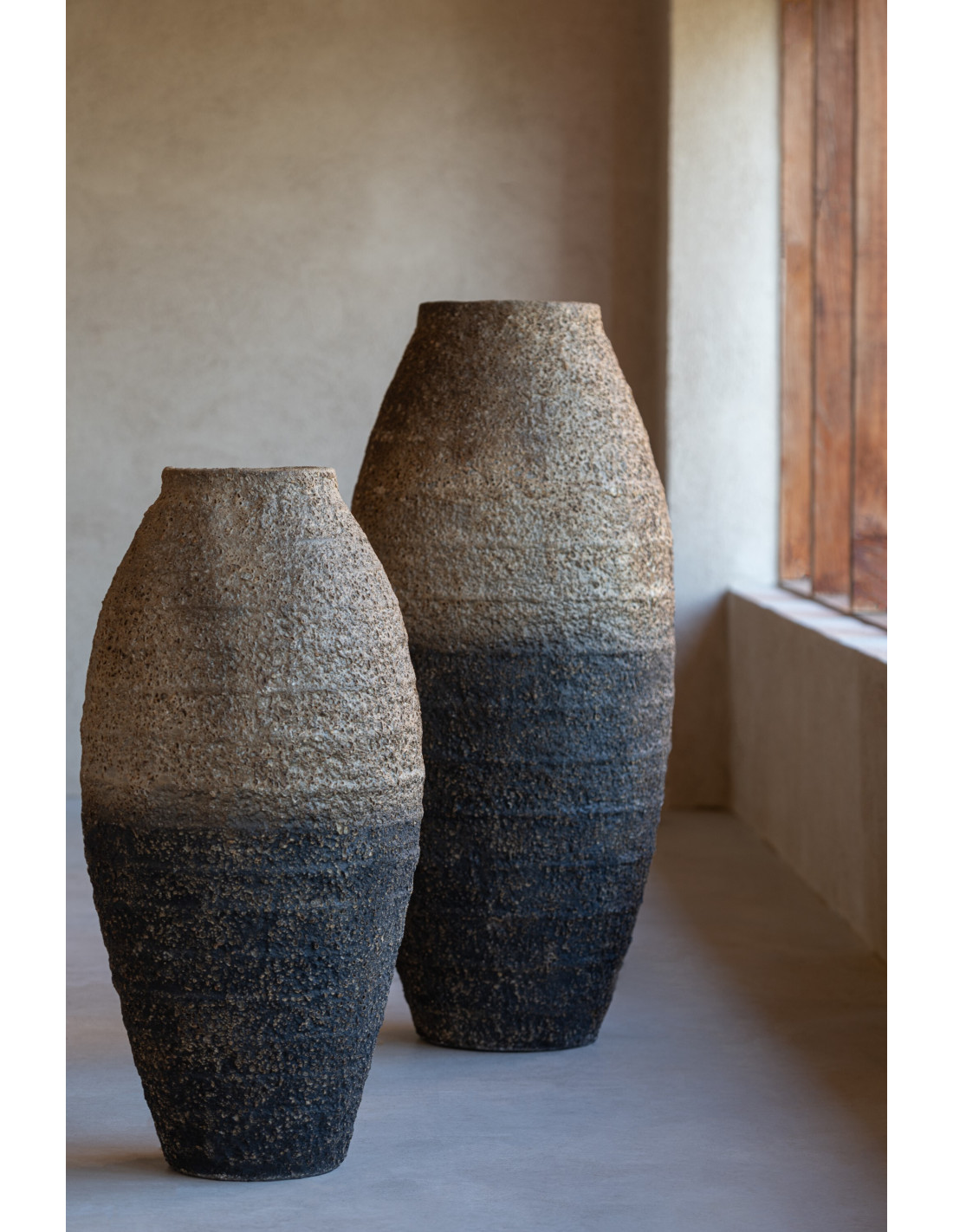 Grand Vase vintage Rond Hauteur 100 cm en Ciment Marron Noir Nemi