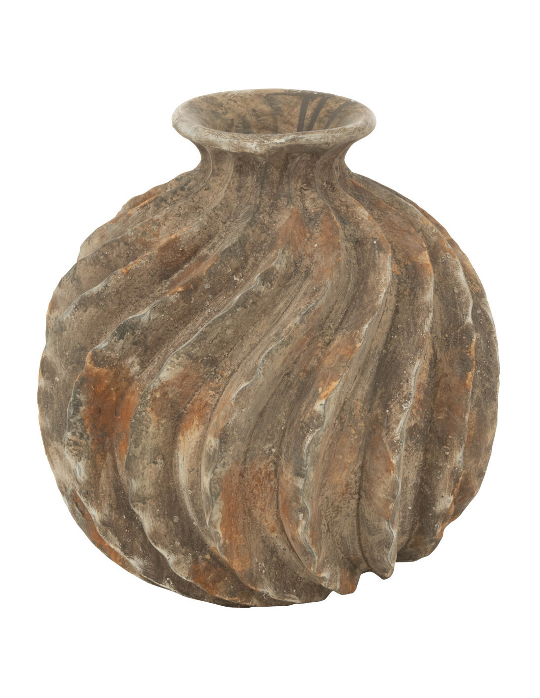 Grand Vase vintage Rond Hauteur 29 cm en Résine Marron Vieilli Motif torsadé Zyla - 1
