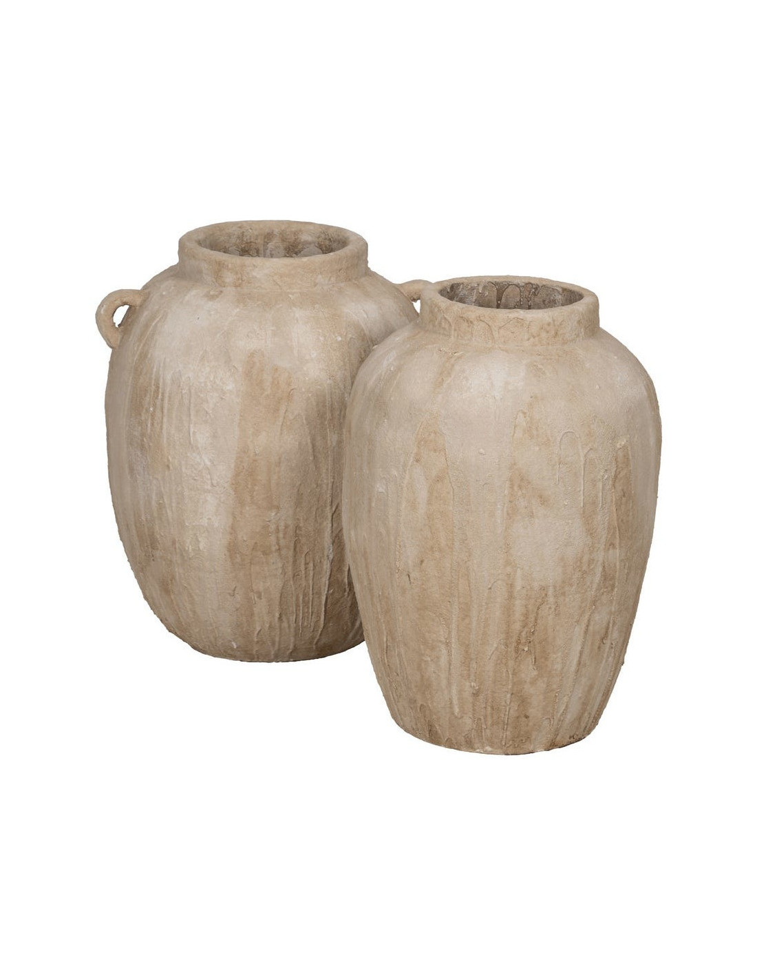 Grand Vase XXL décoratif style méditerranéen minéral Jarre H 58 cm Céramique Beige Sarova