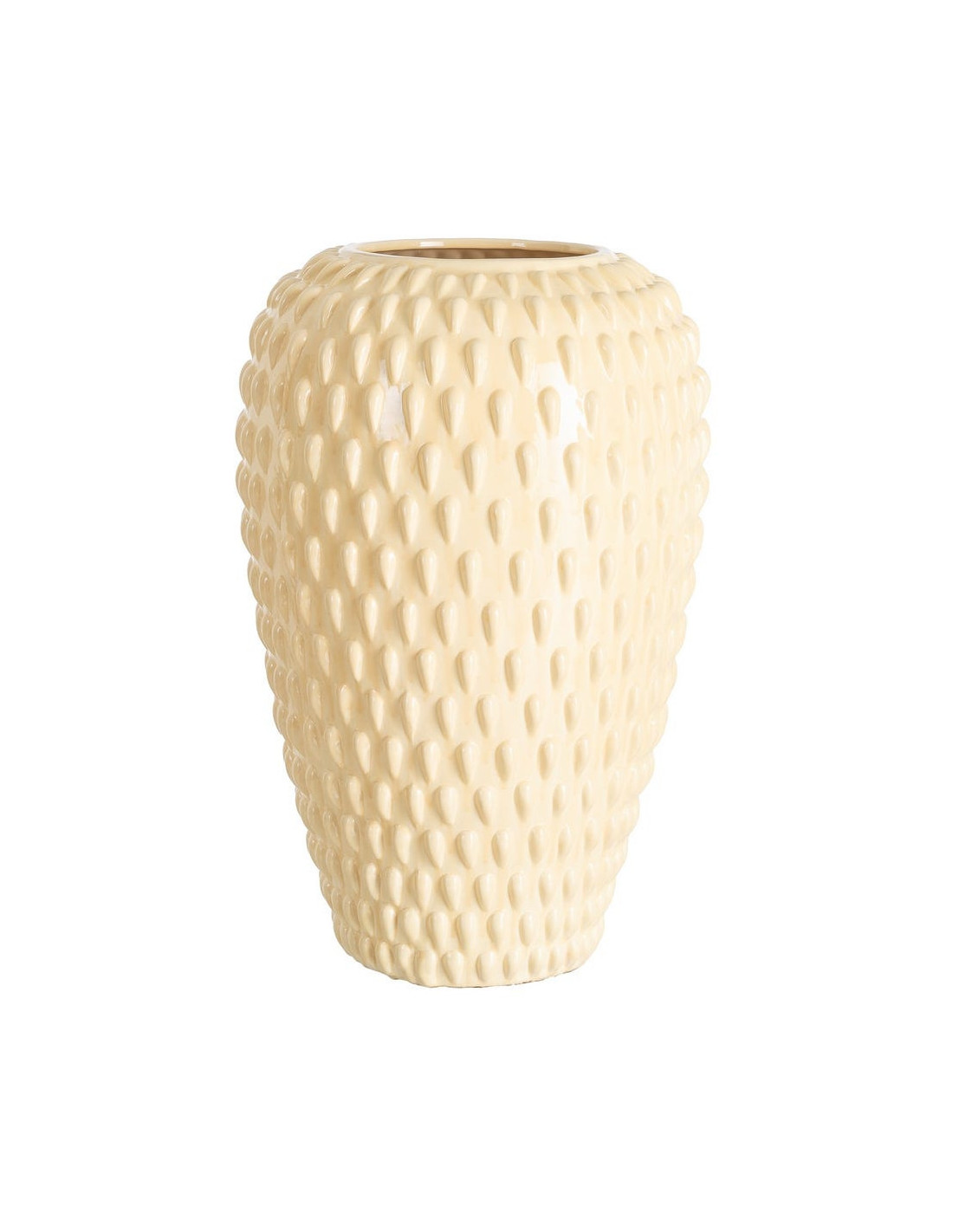 Grand Vase XXL design moderne Conique H 52 cm Céramique Blanc crème Motif picots Zafirio