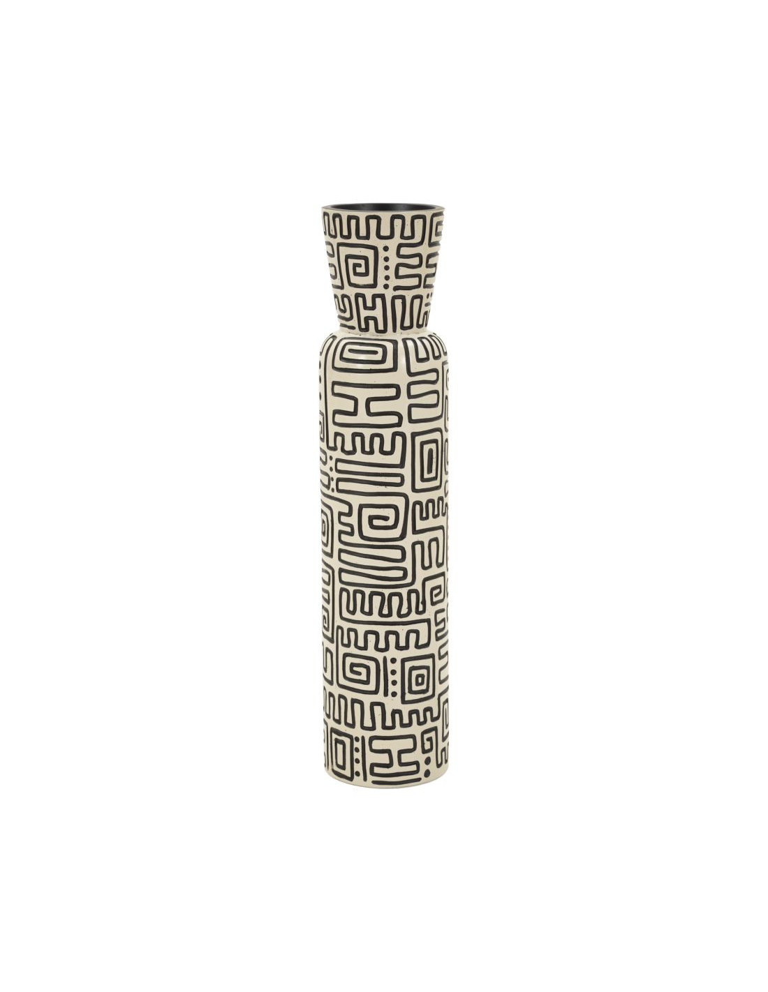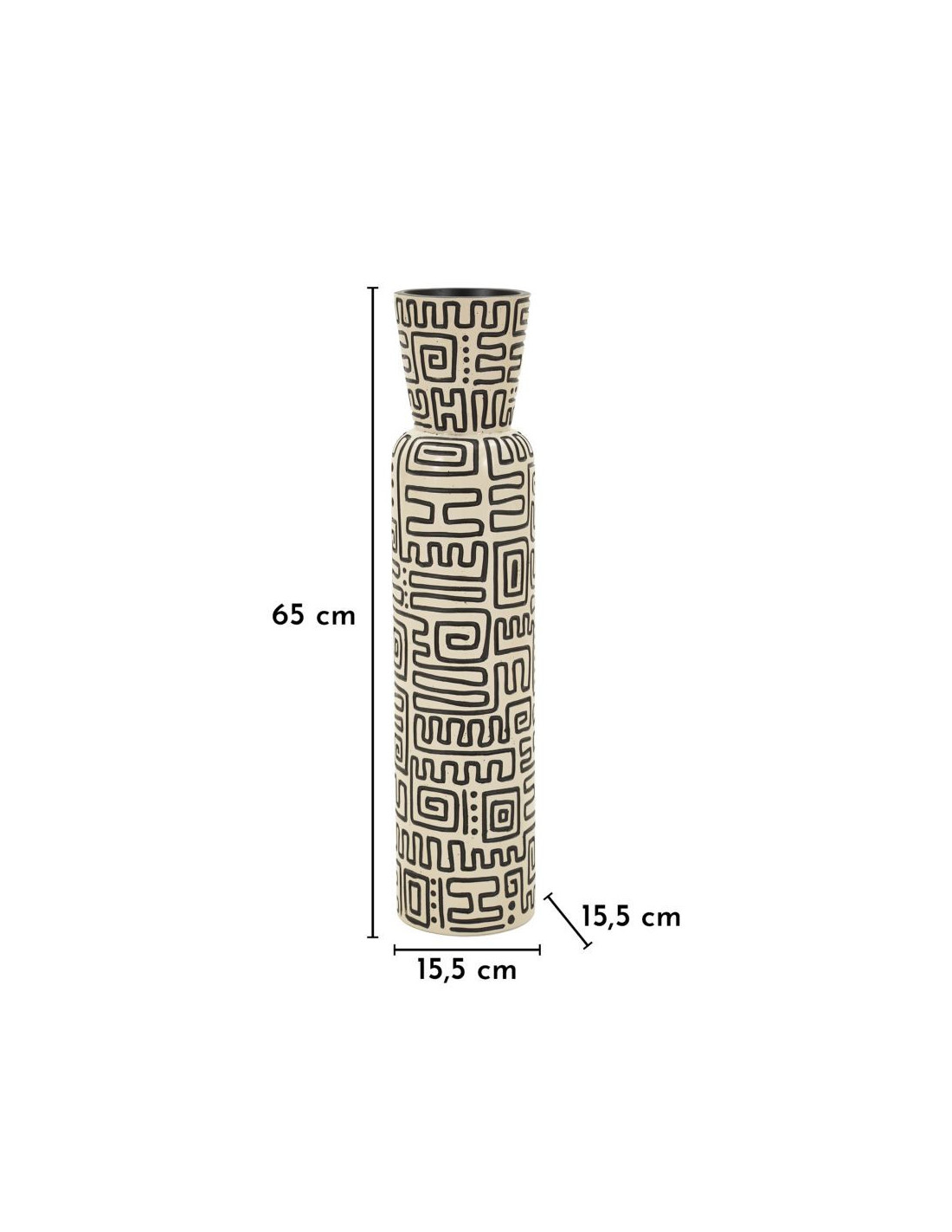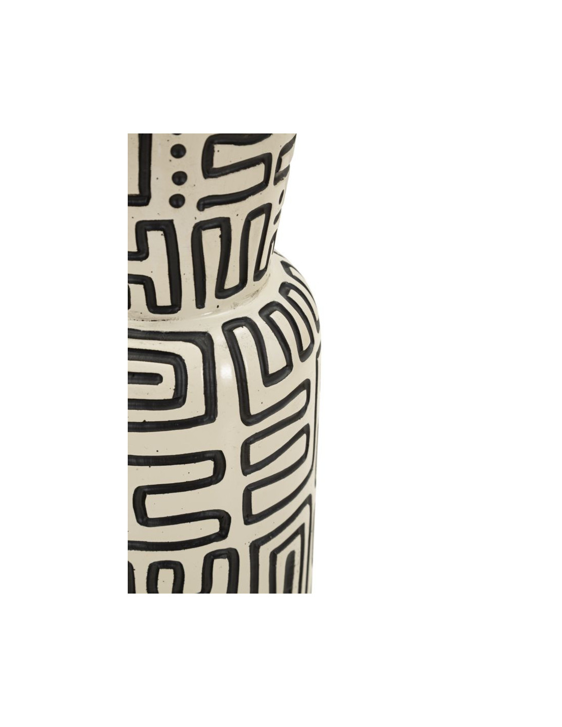 Grand Vase XXL Style ethnique graphique Bouteille H 65 cm Résine Blanc Noir Nairobi