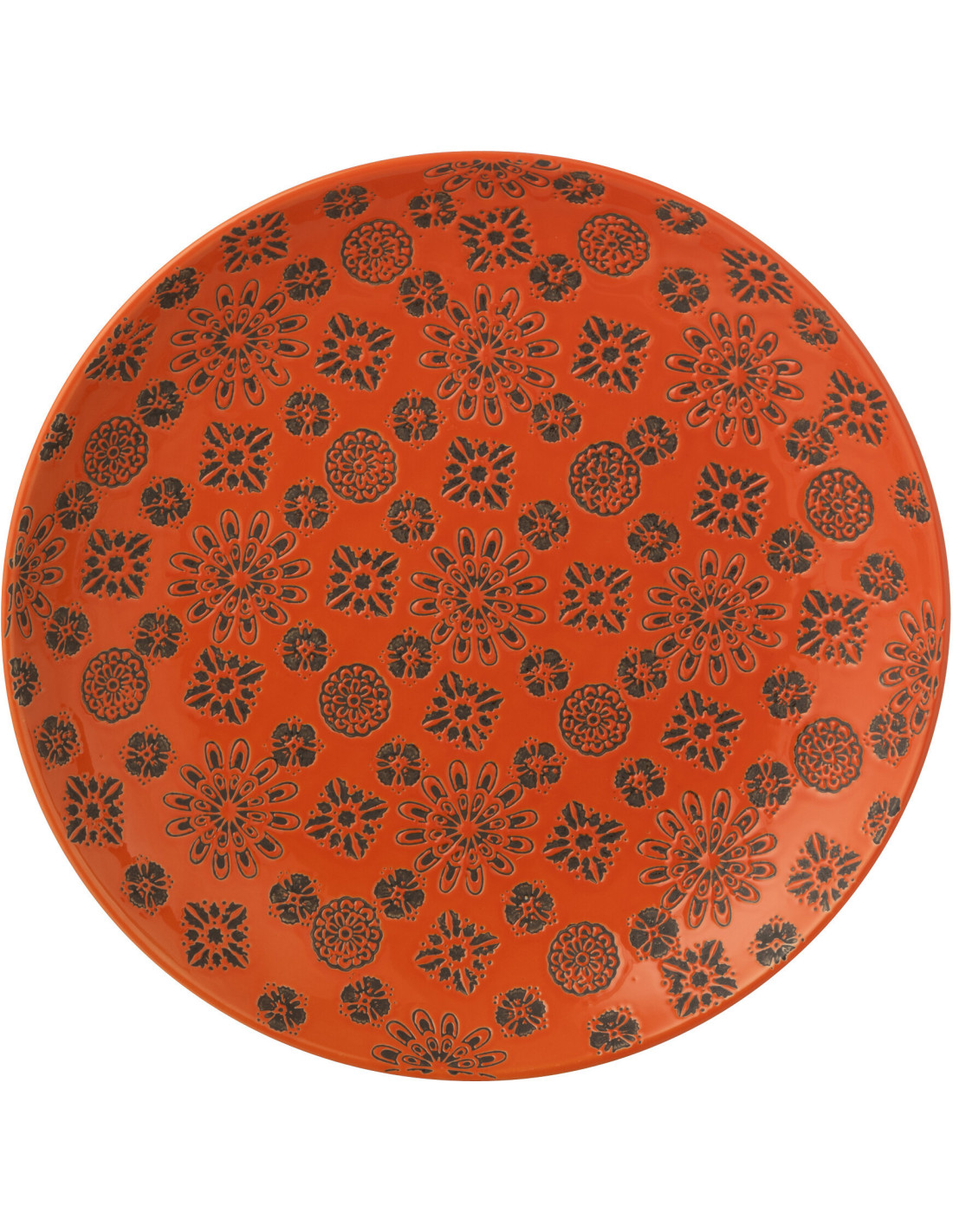 Grande Assiette déco bohème méditerranéen Ronde 37 cm Porcelaine Orange Motif fleurs Soleyada