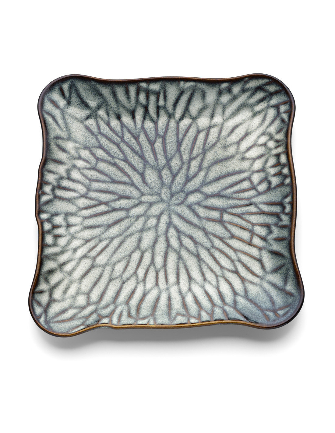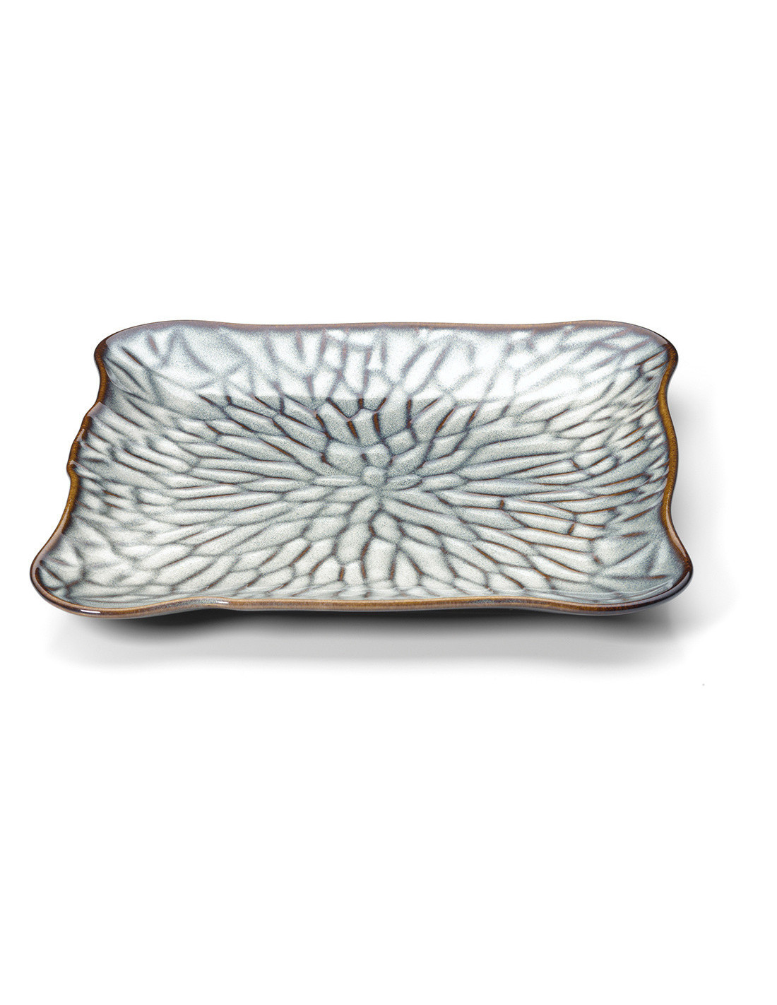 Grande Assiette plate japonaise Carrée 28 cm Céramique Gris Marron The Lotus Ice