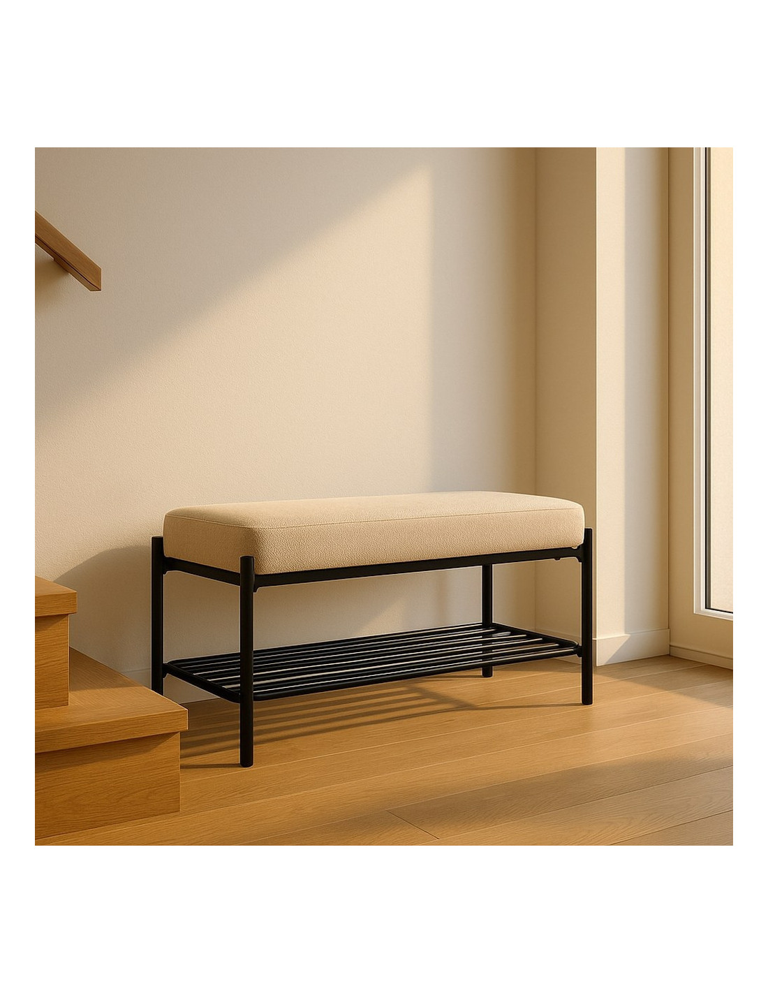 Il permet de s’asseoir facilement pour se chausser tout en gardant un espace rangé.