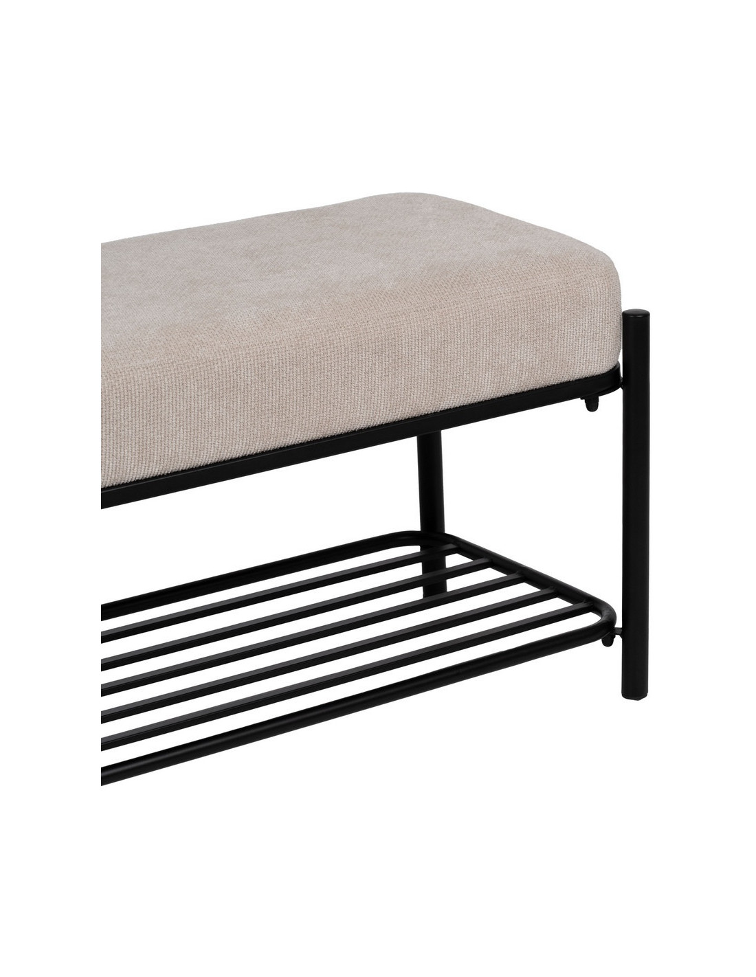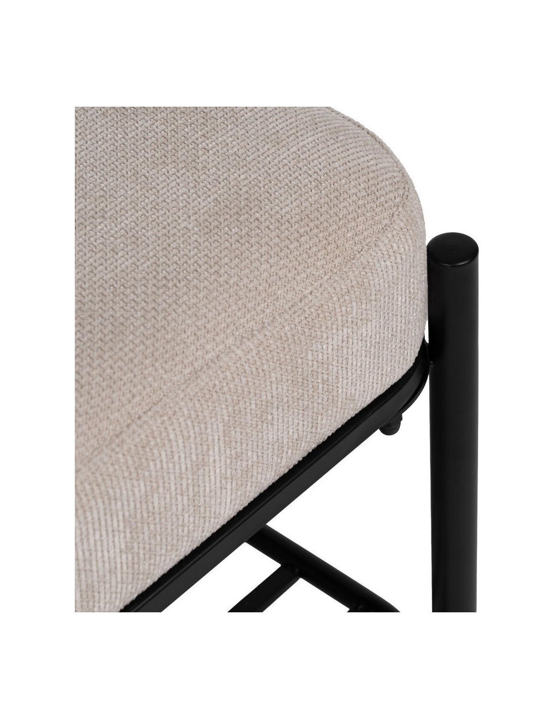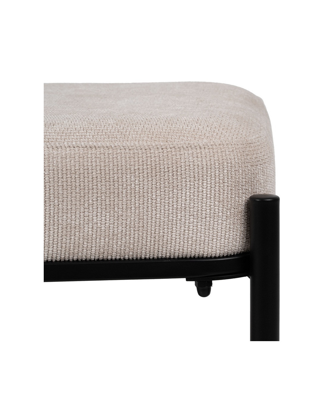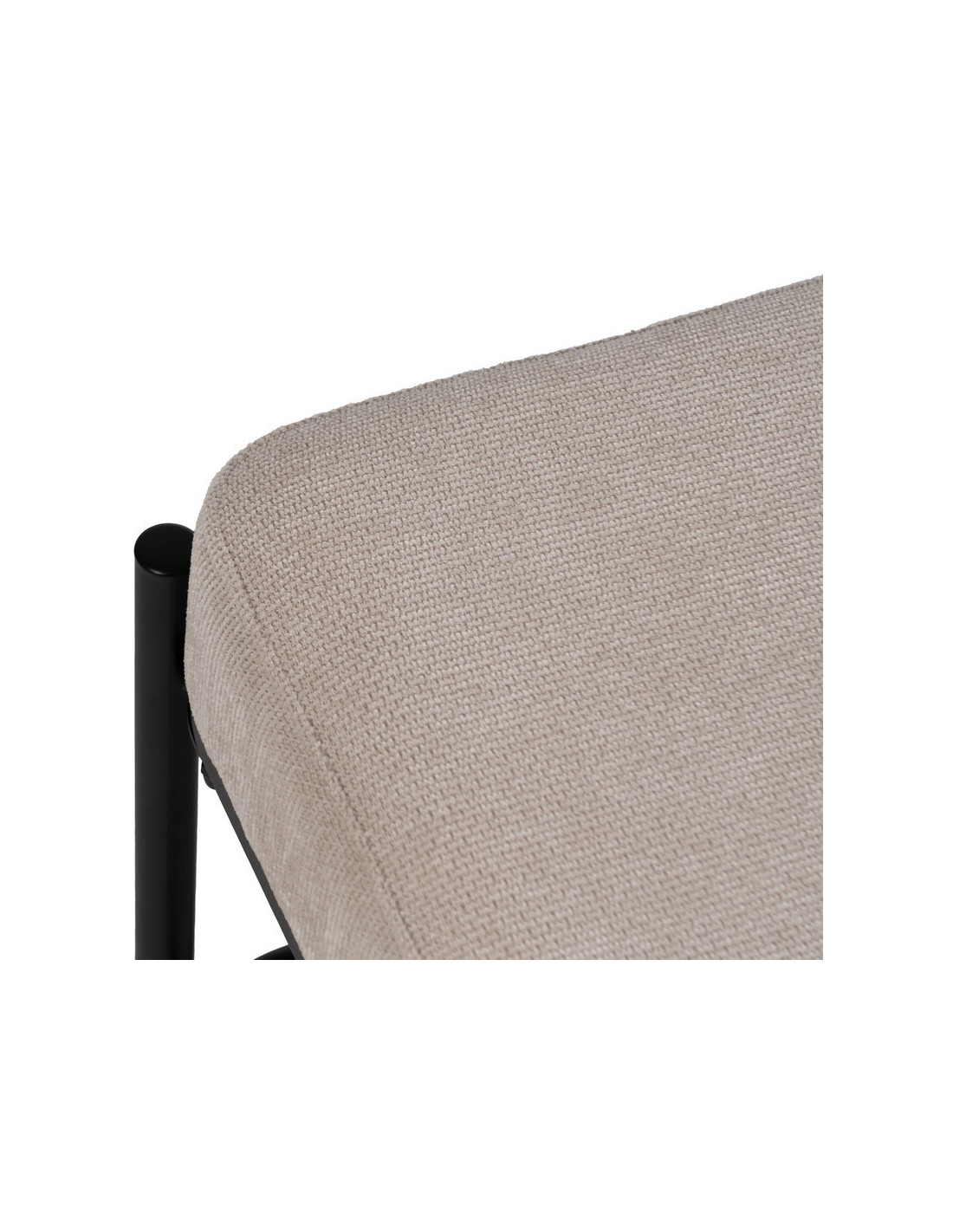 L’assise en tissu beige apporte une touche douce et lumineuse. Elle contraste avec la structure métallique noire pour créer un équilibre visuel sobre et efficace.