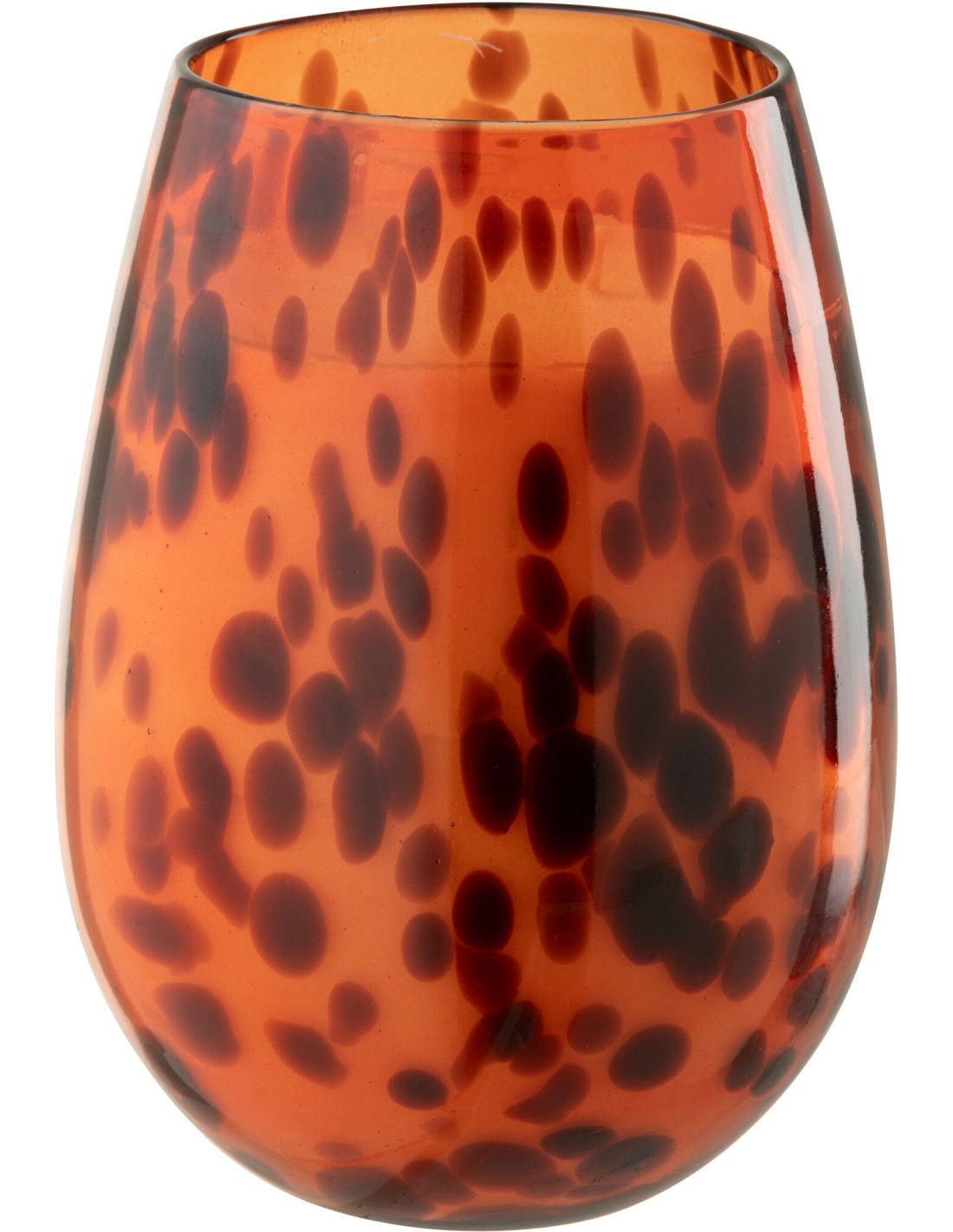 Grande Bougie déco style art déco H 22 cm Verre Orange Noir Motif taches Mia