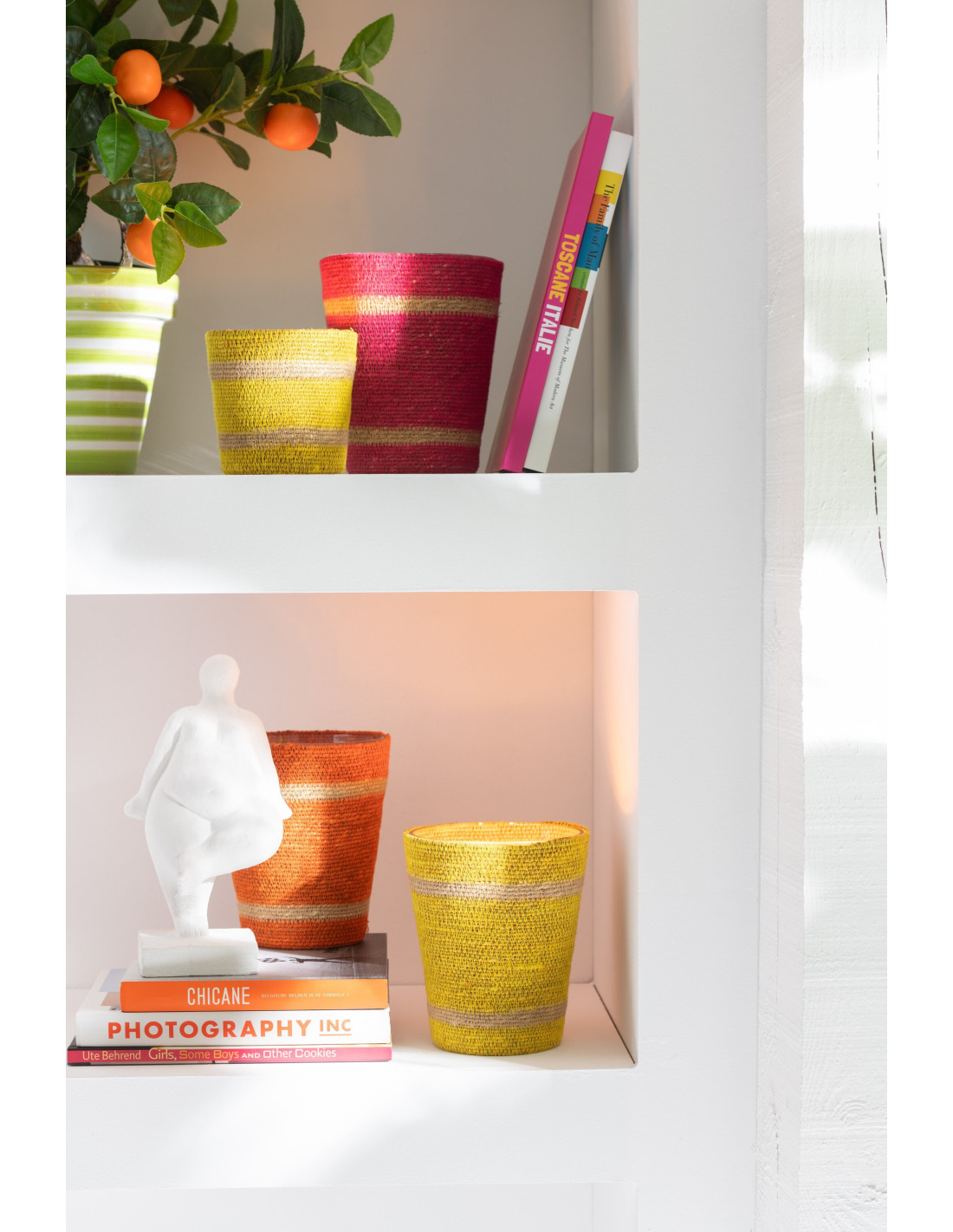 Grande Bougie ethnique chic Mélange fruité Zesty Sunburst 75 H Rotin Jaune Tressé Verre Cire Flamia