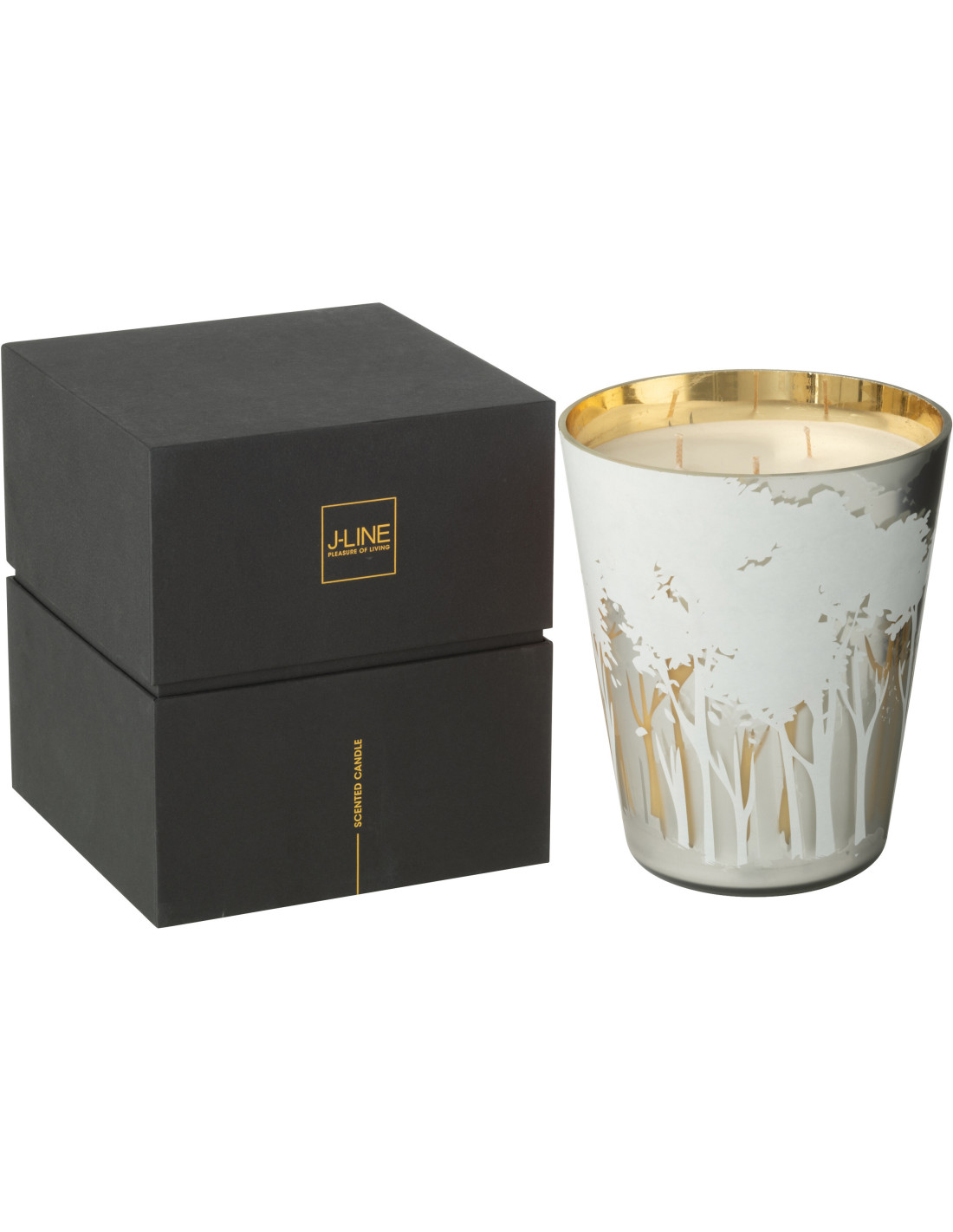 Grande Bougie parfumée extra longue durée Ayra 95 H Verre Blanc Doré Motif forêt Soja Noa