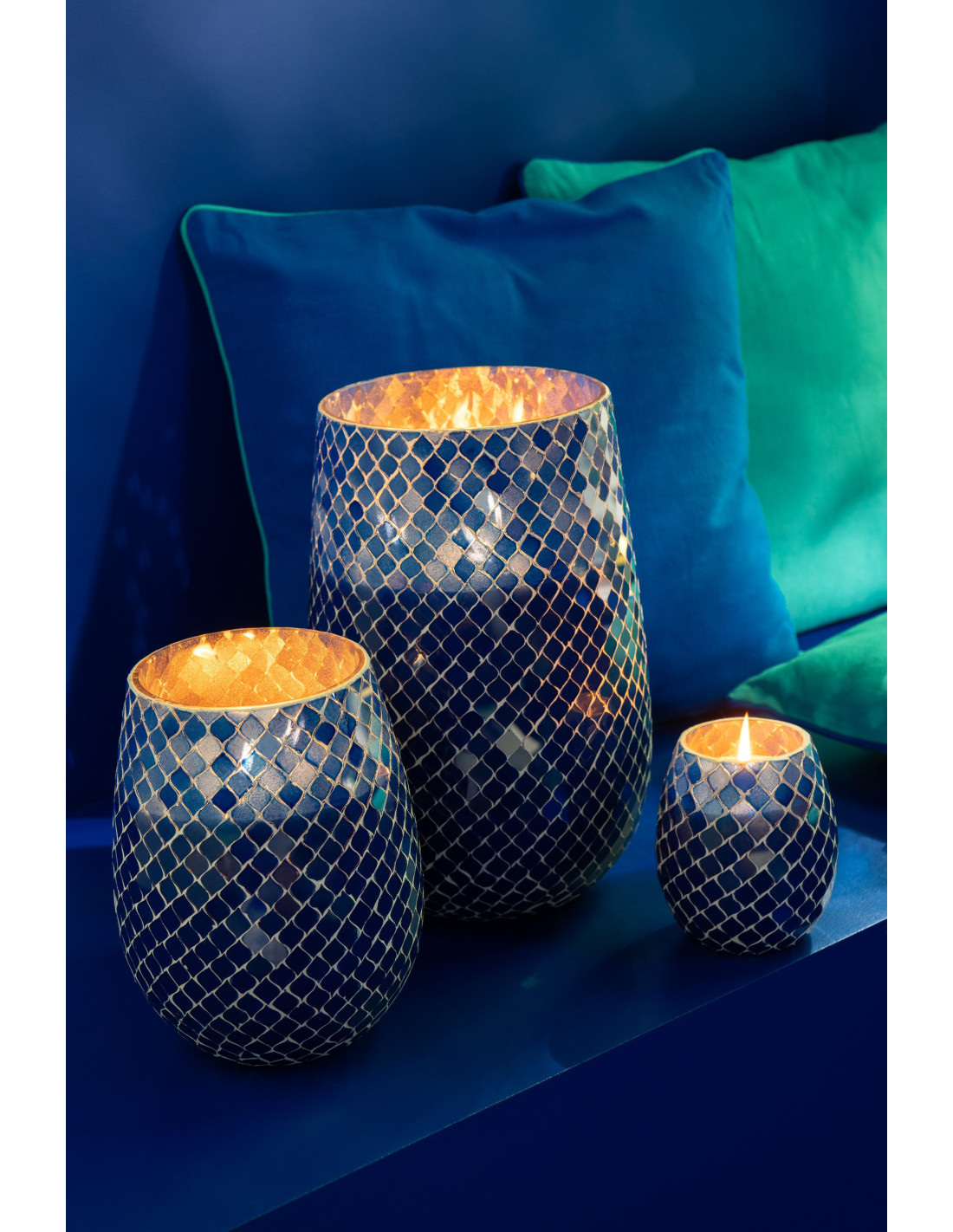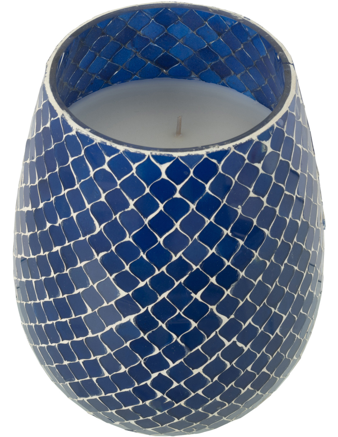 Grande Bougie style méditerrannéen extra longue durée Mélange floral Juniper Love 120 H Verre Bleu Mosaïque Cire Mia