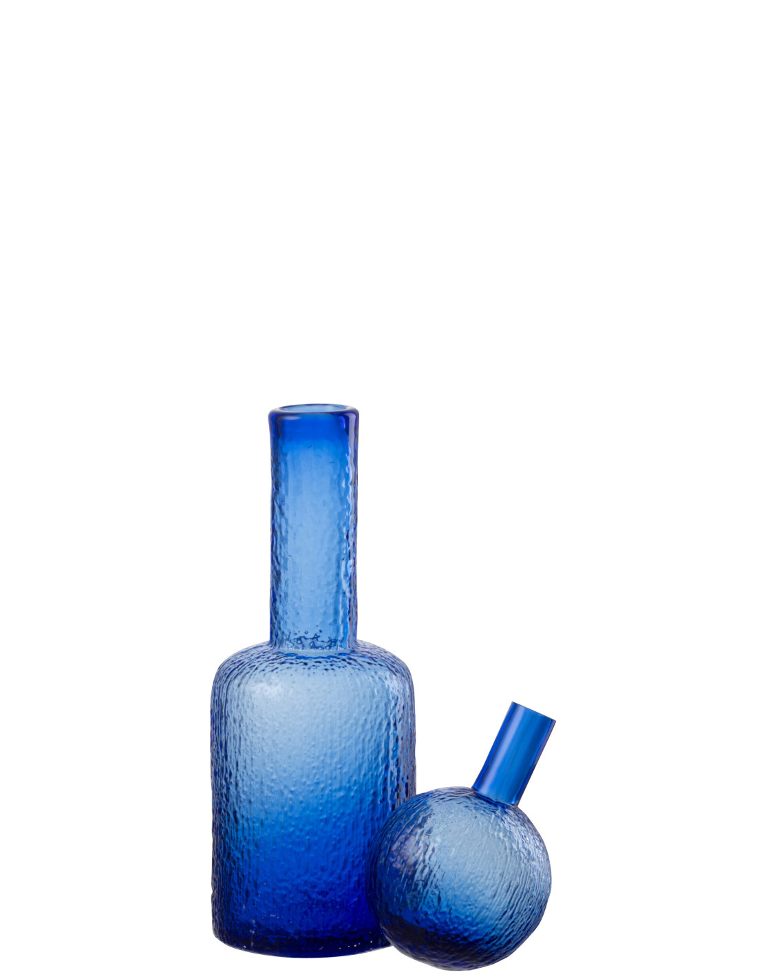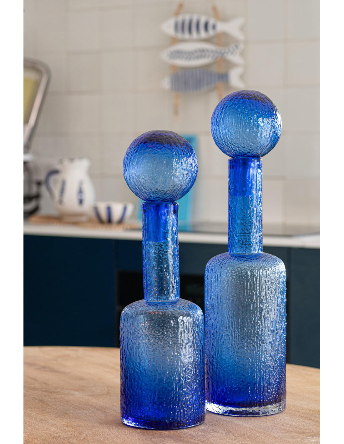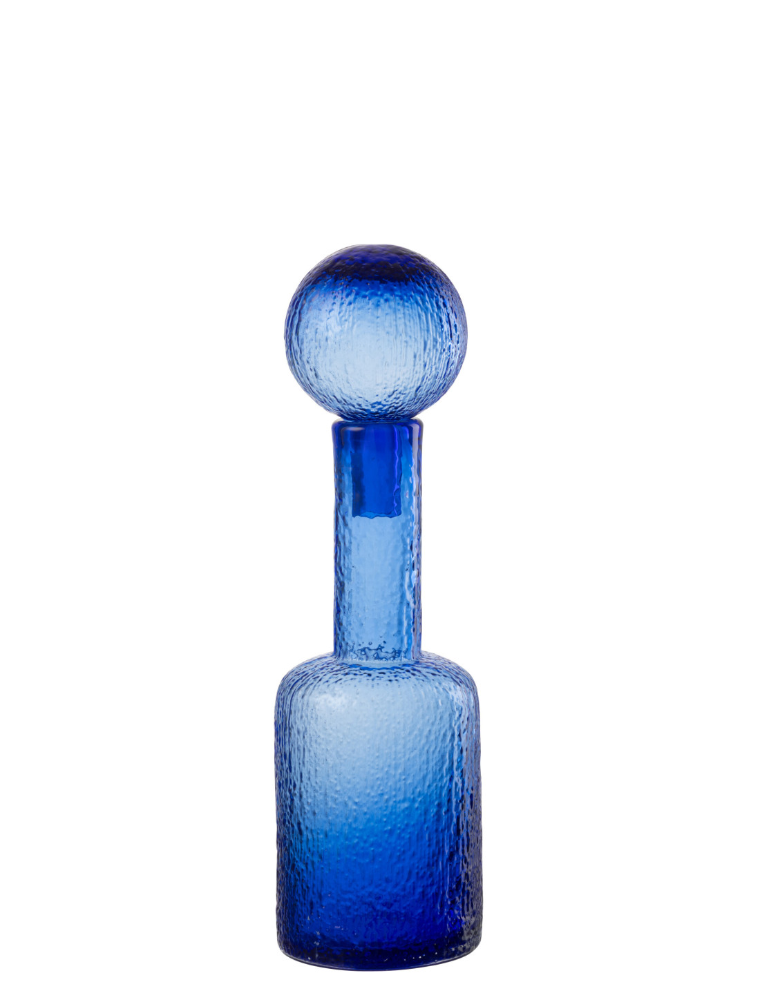 Grande Bouteille déco bouchon boule H 43 cm Verre Bleu foncé Motif relief Colossa