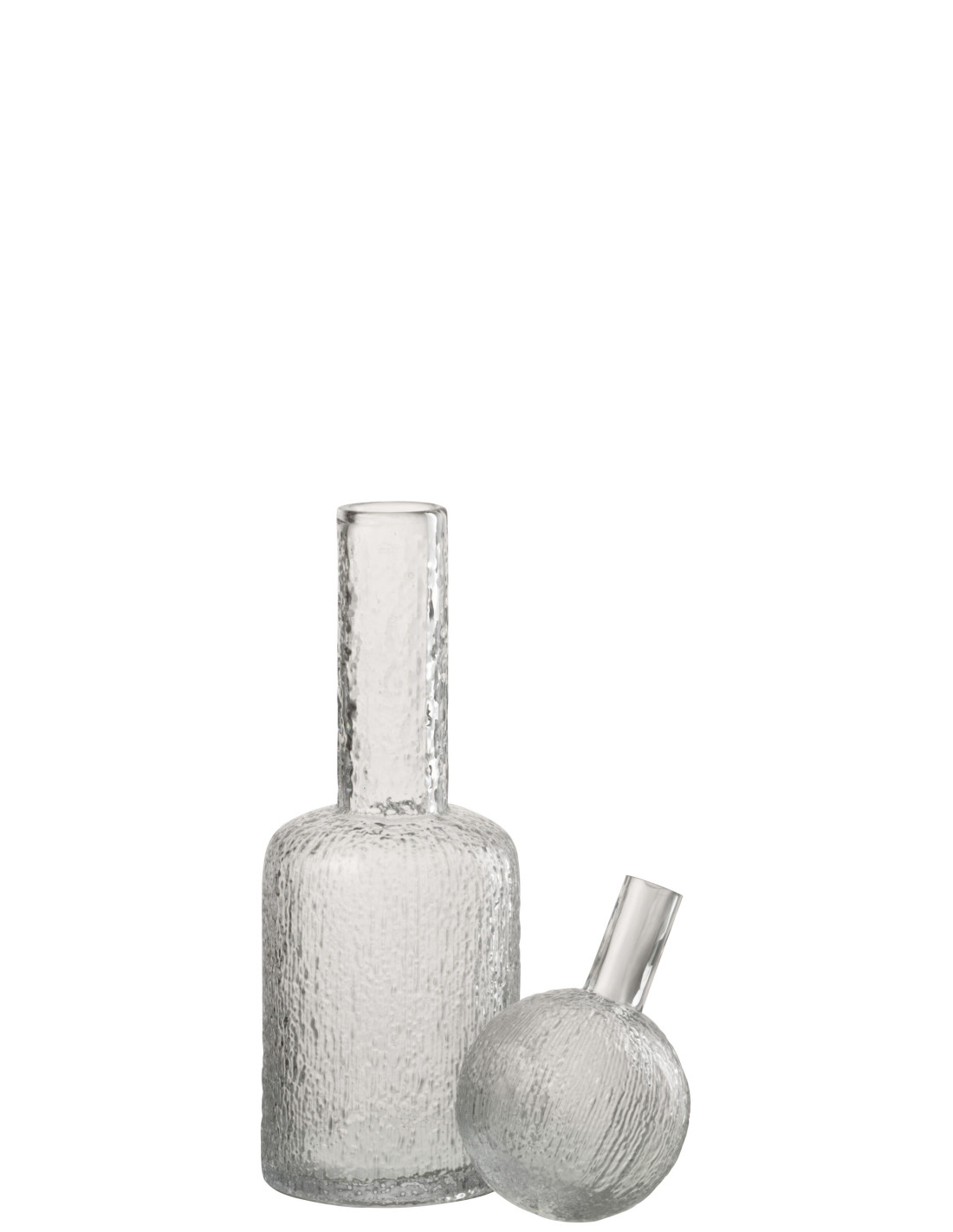 Grande Bouteille déco bouchon boule H 43 cm Verre Transparent Motif relief Colossa