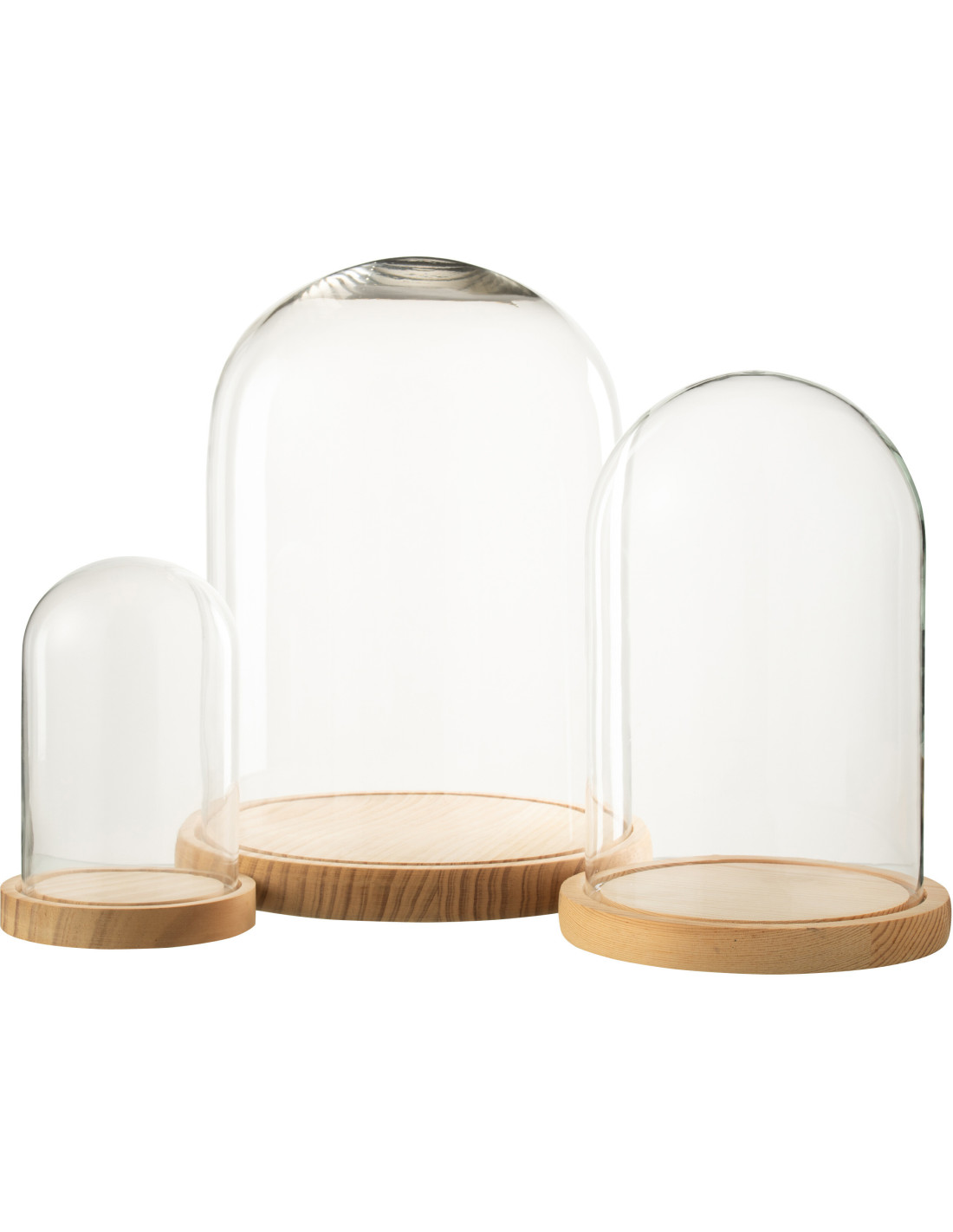 Grande Cloche décorative H 29 cm Verre Transparent Bois Naturel Domyla