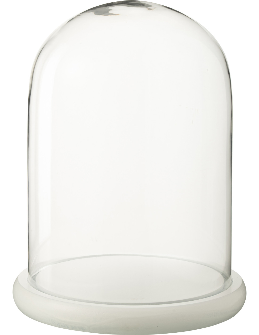 Grande Cloche décorative Hauteur 29 cm en Verre Transparent Bois Blanc Whitty