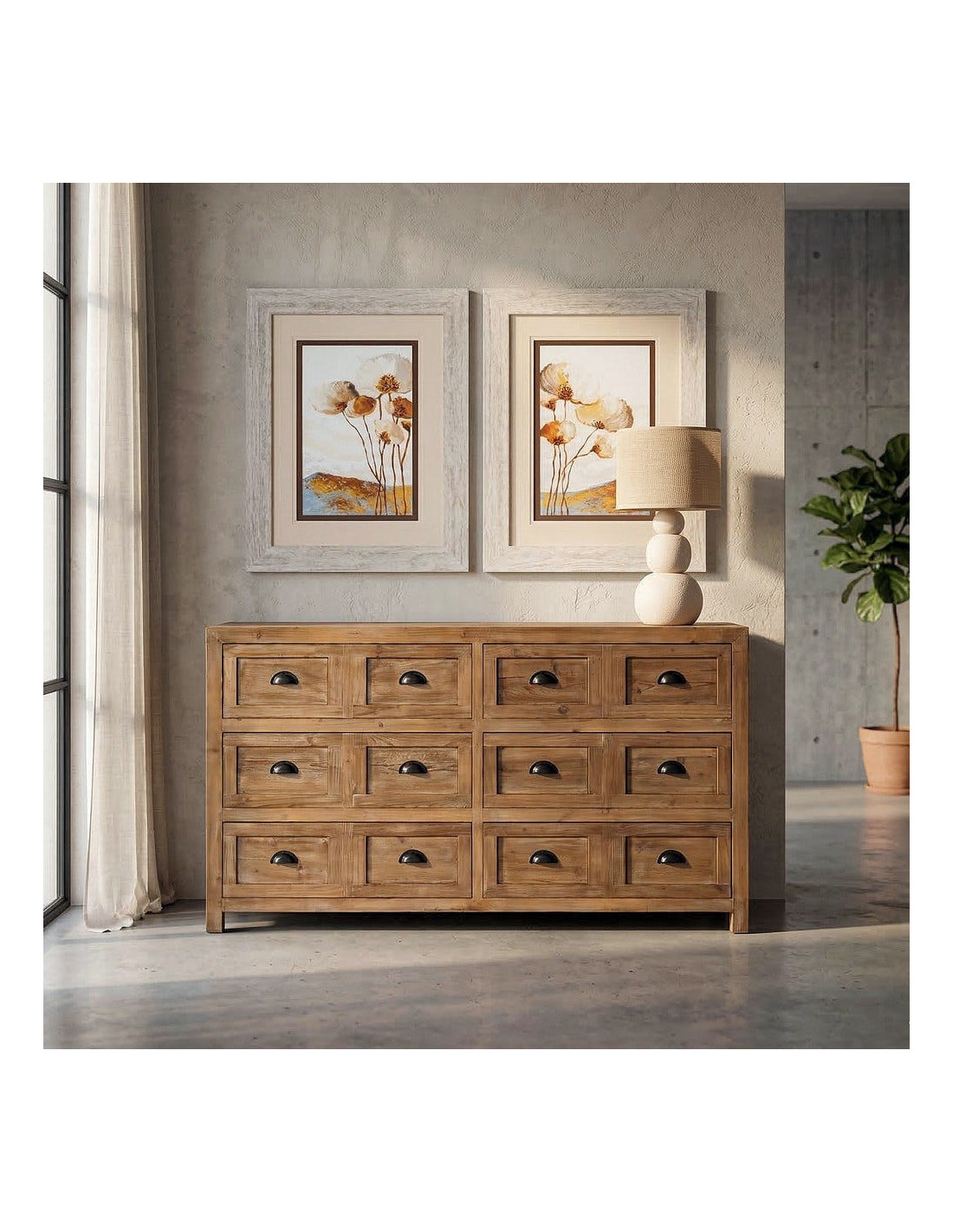 Grande Commode style vintage industriel 6 tiroirs Bois recyclé Naturel Ateliora