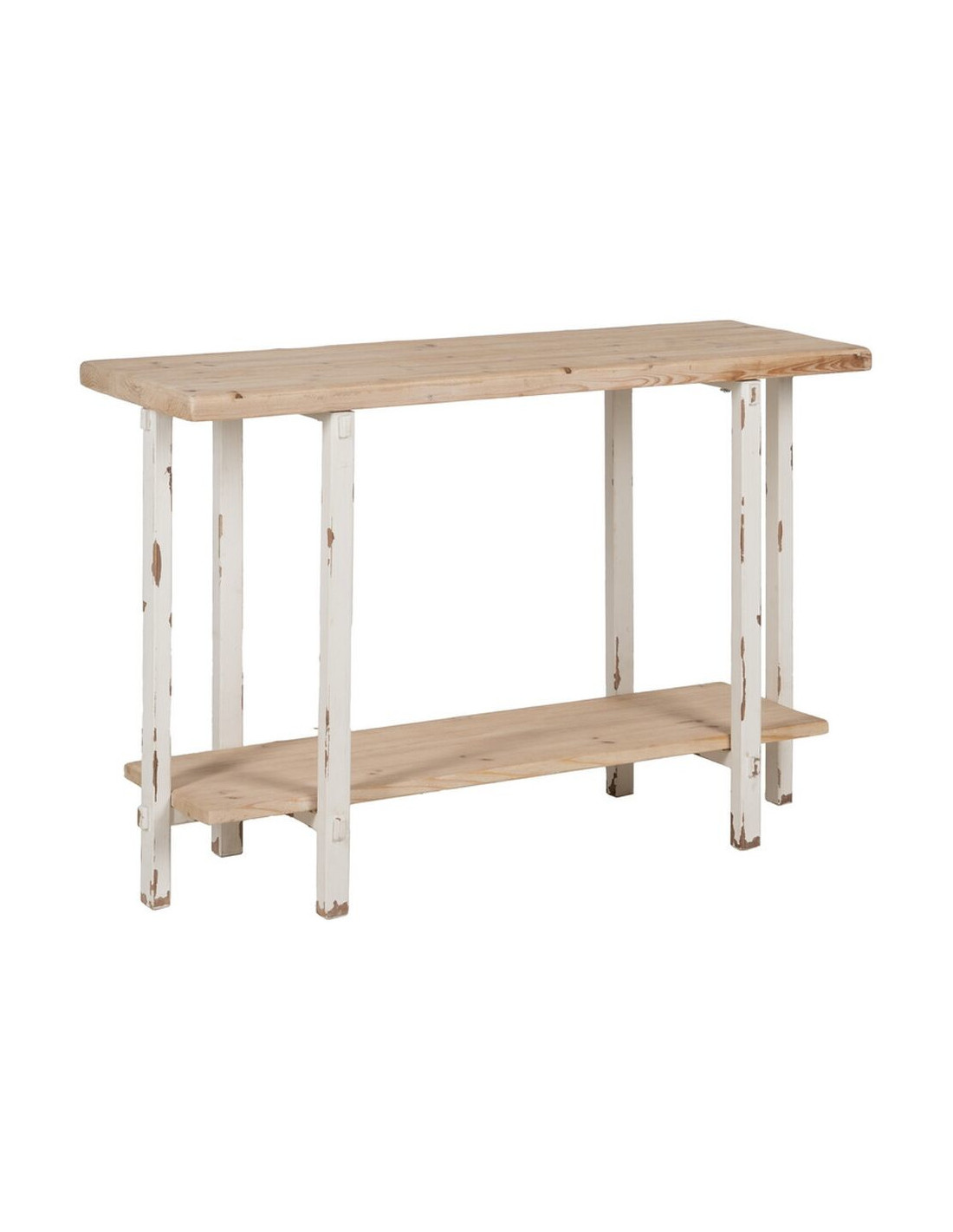 Grande Console Campagne chic Rectangulaire 1 étagère en Bois de sapin Blanc crème Vieilli Naturel Formentera - 1