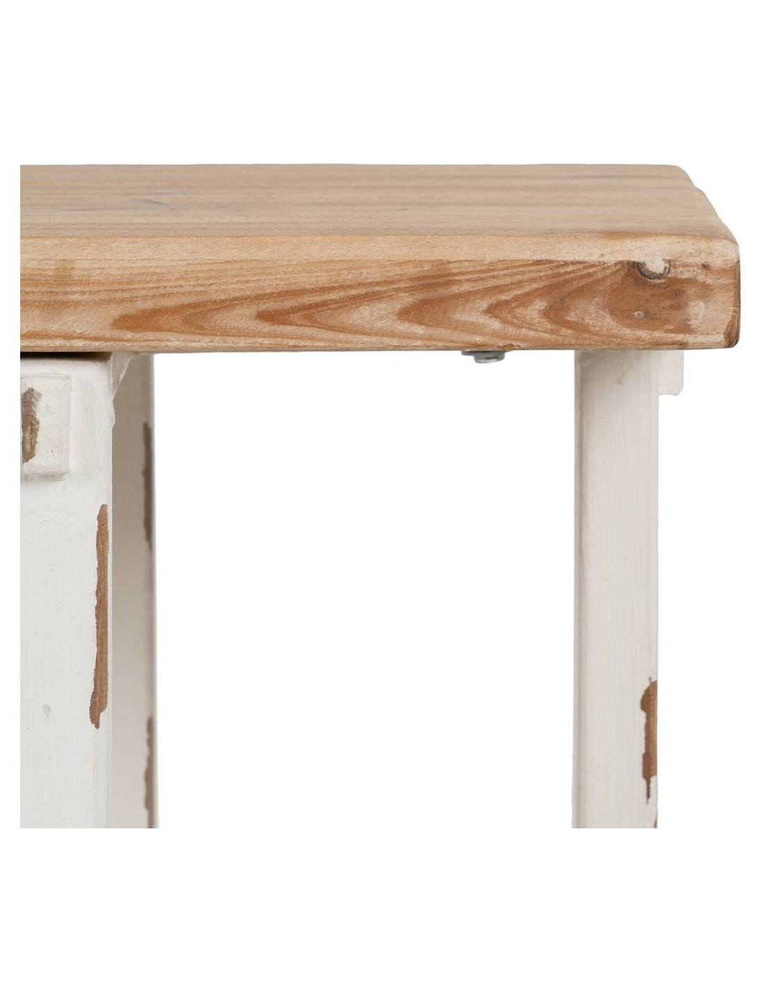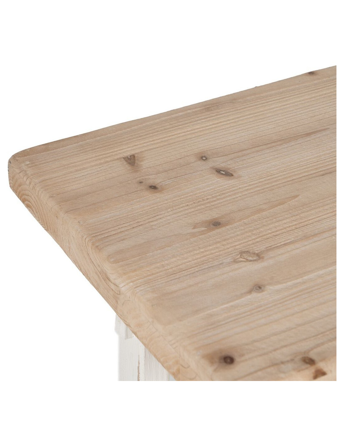 Grande Console Campagne chic Rectangulaire 1 étagère en Bois de sapin Blanc crème Vieilli Naturel Formentera - 6