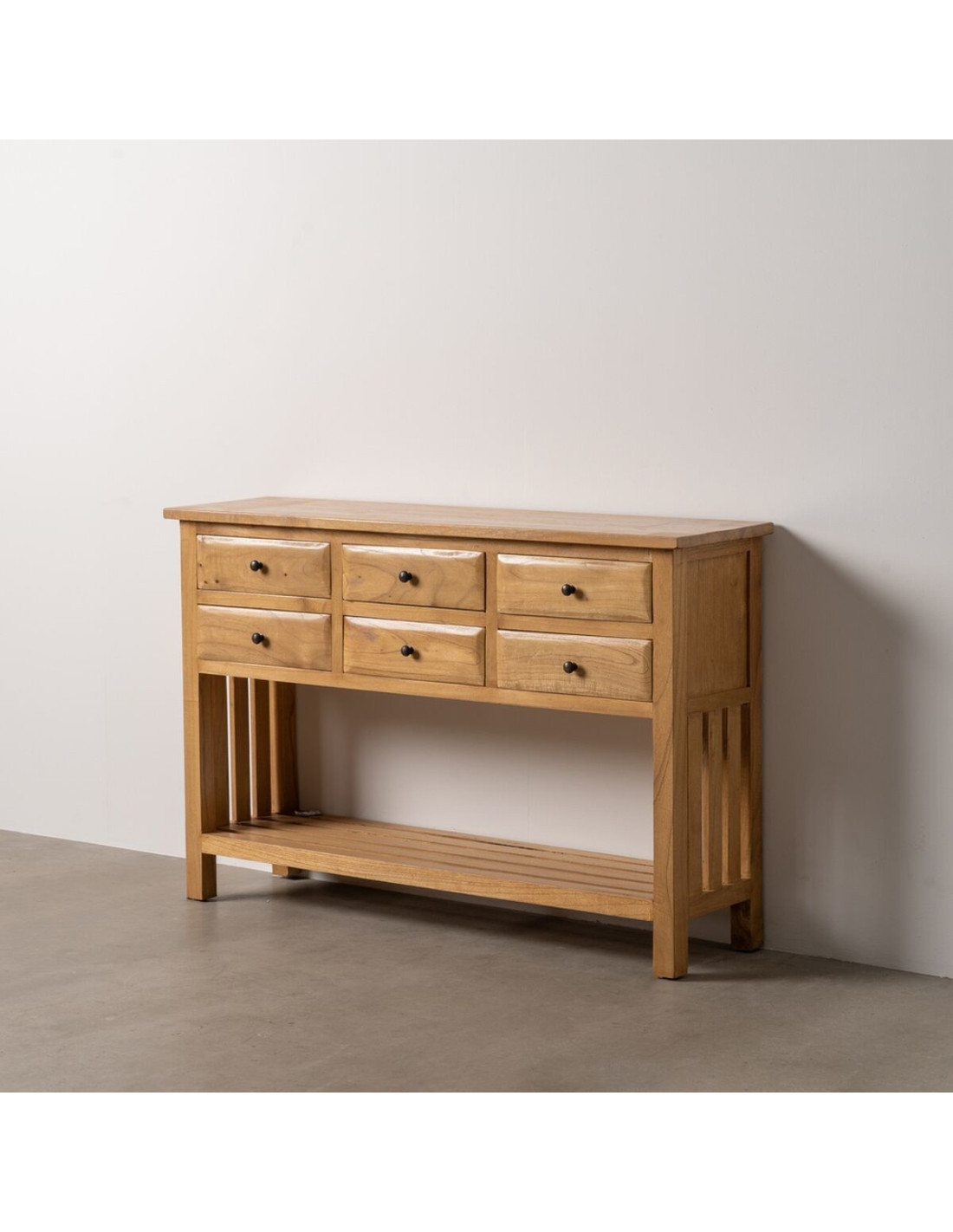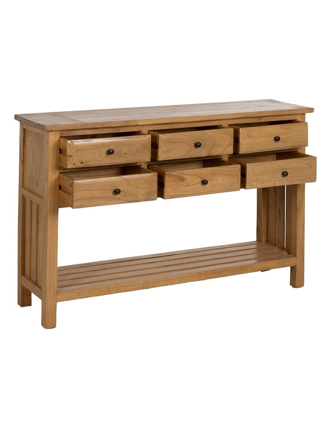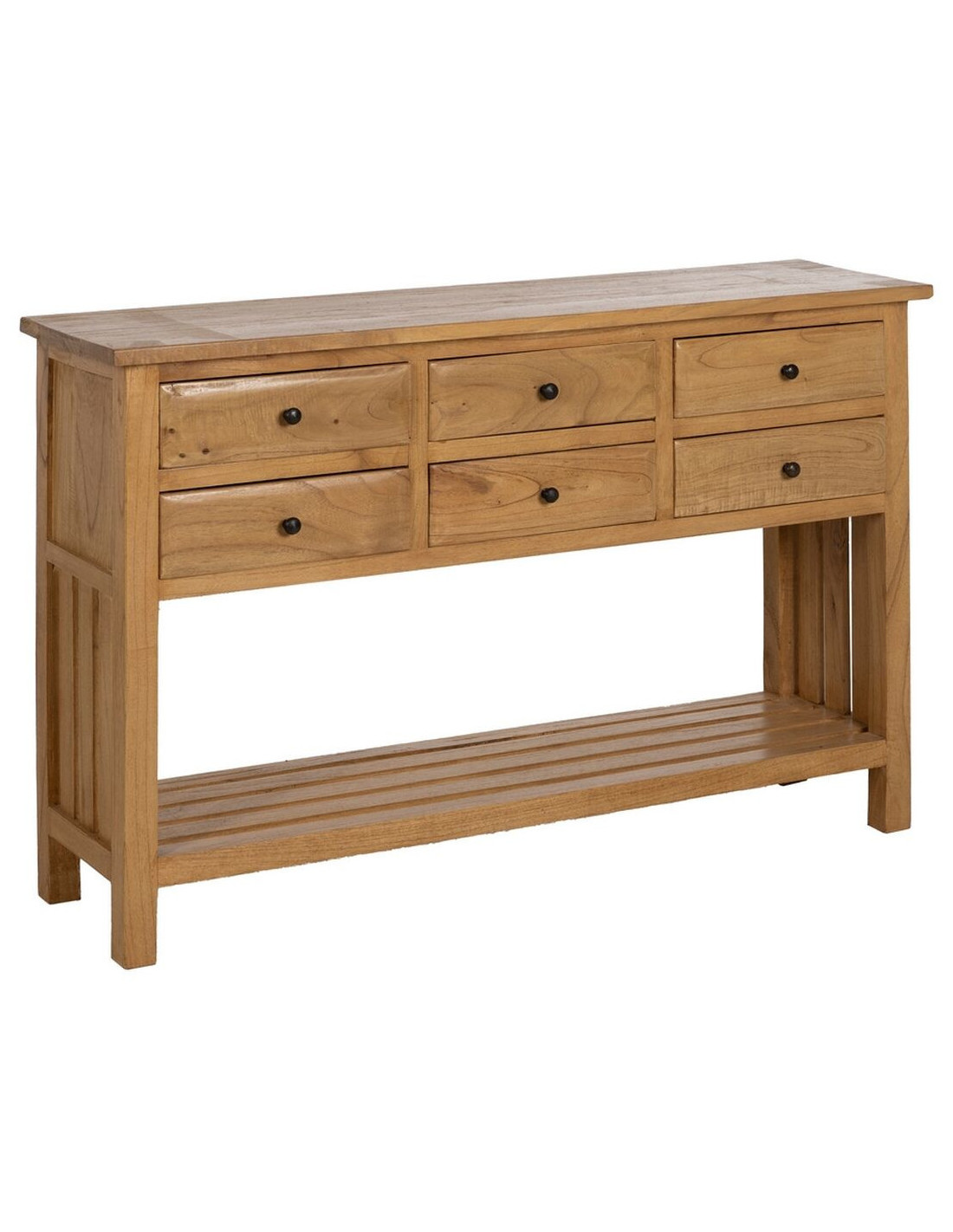Grande Console d'entrée moderne 6 tiroirs 1 étagère en Bois de mindi Naturel Sitges