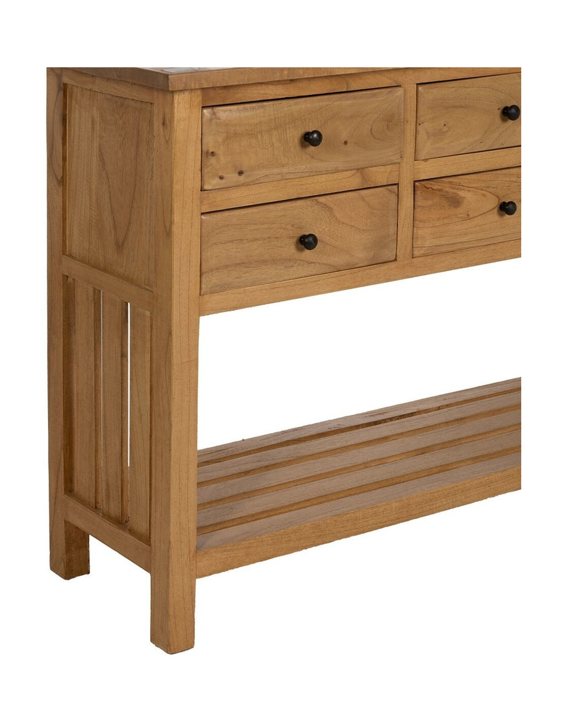Grande Console d'entrée moderne 6 tiroirs 1 étagère en Bois de mindi Naturel Sitges - 4