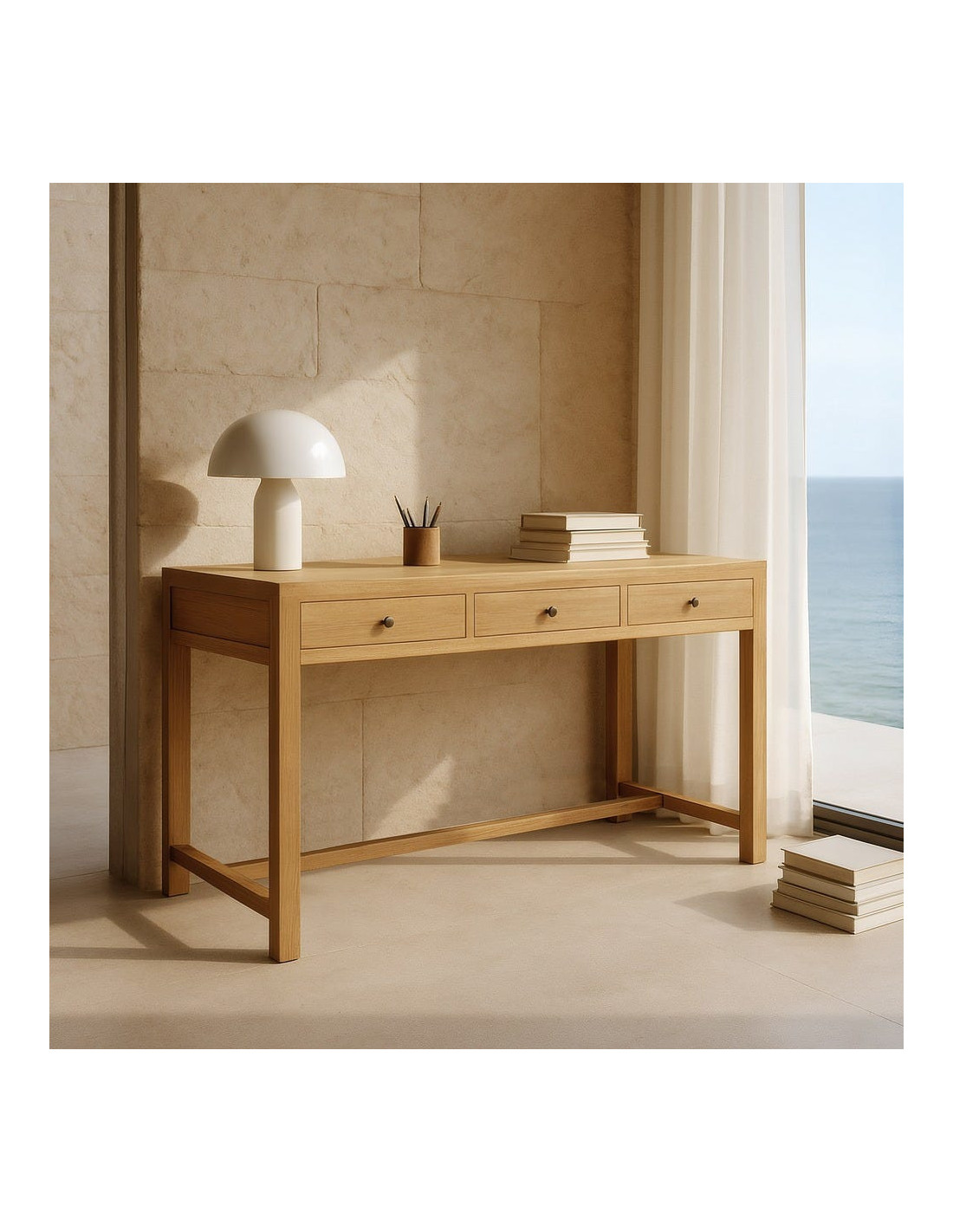 Grande Console rustique chic 3 tiroirs 130 cm Naturel Nakel